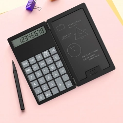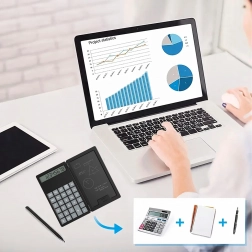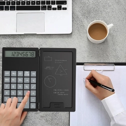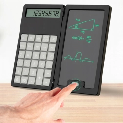 Deze slimme rekenmachine met opvouwbare behuizing combineert klassiek rekenen met een praktisch LCD-schrijfvlak voor notities. Dankzij het lichte en slanke ontwerp stop je hem gemakkelijk in je tas of zak en heb je hem altijd bij de hand voor snelle berekeningen en notities.