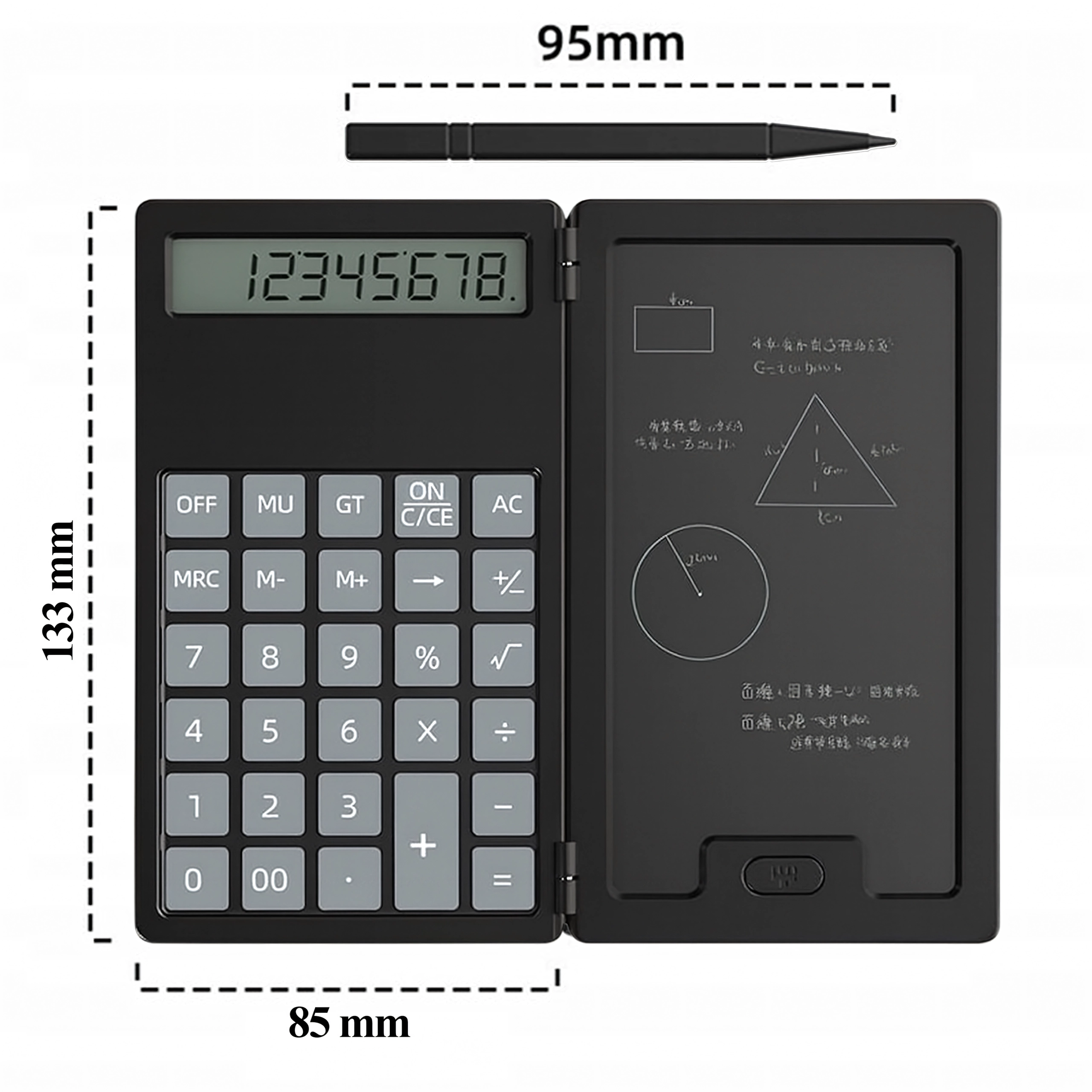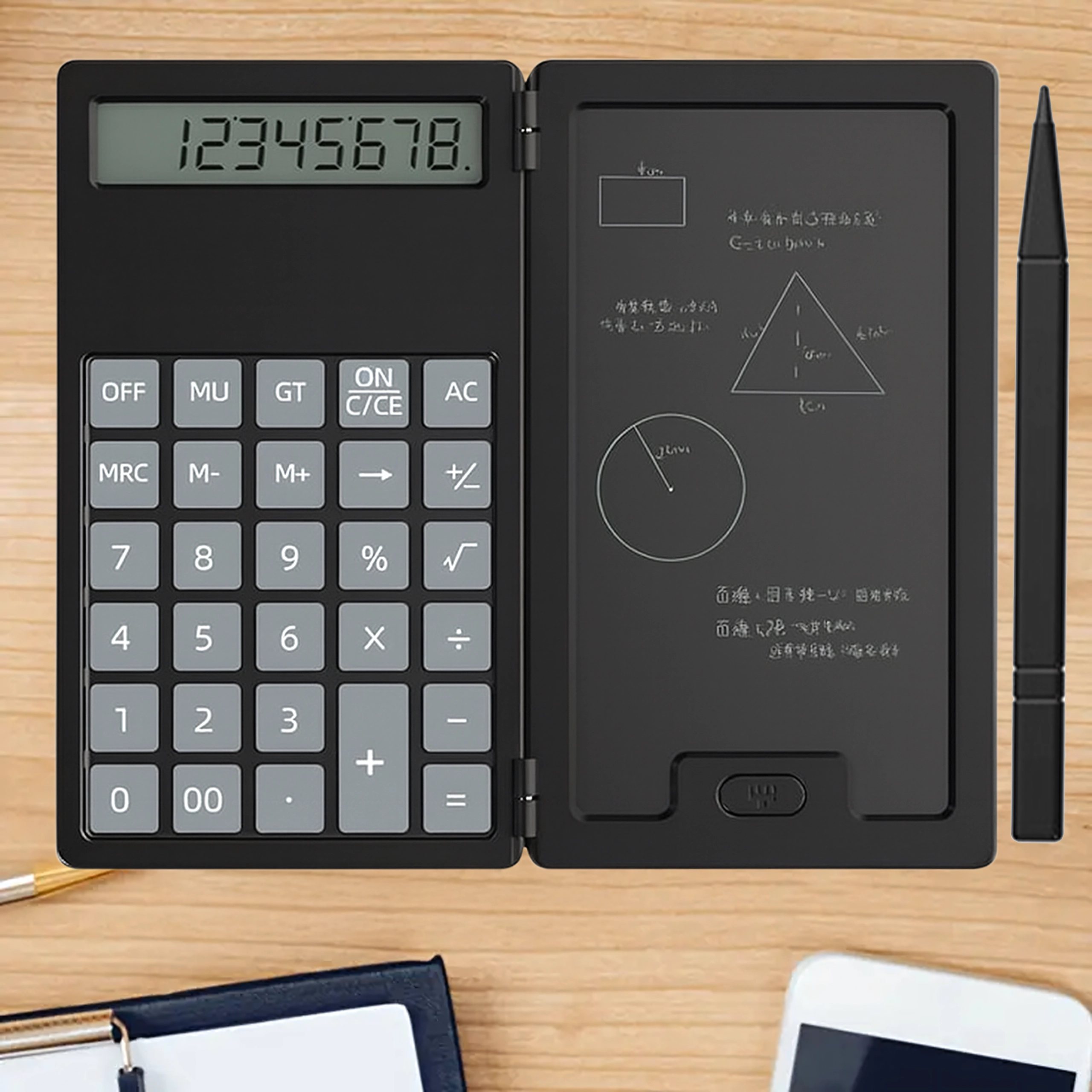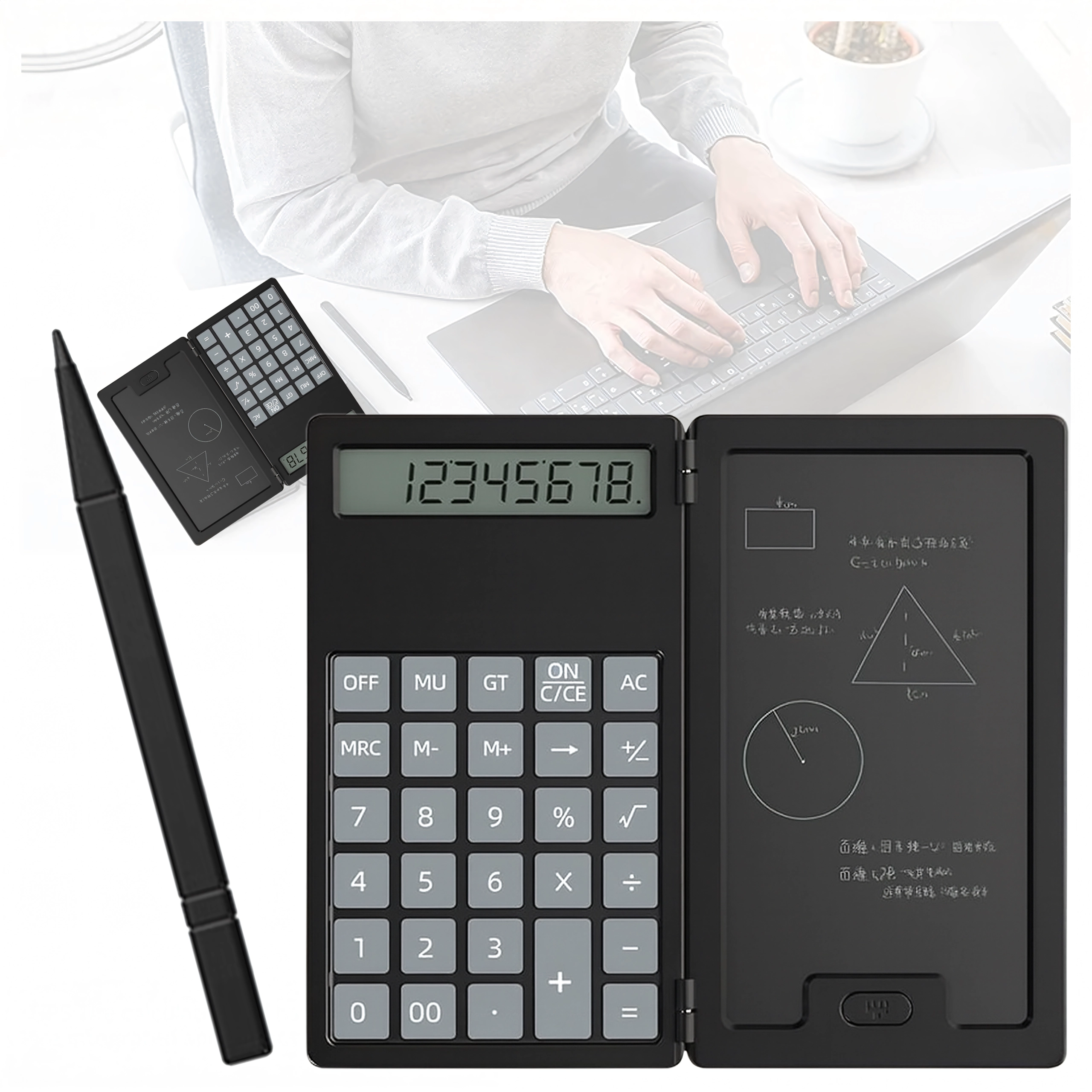 Het LCD-notitieblok laat je met de stylus schrijven, met één druk wissen en terugkeren naar berekeningen zonder onnodig papierwerk. Het apparaat is ideaal voor studenten, boekhouders en dagelijks gebruik in huis.