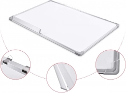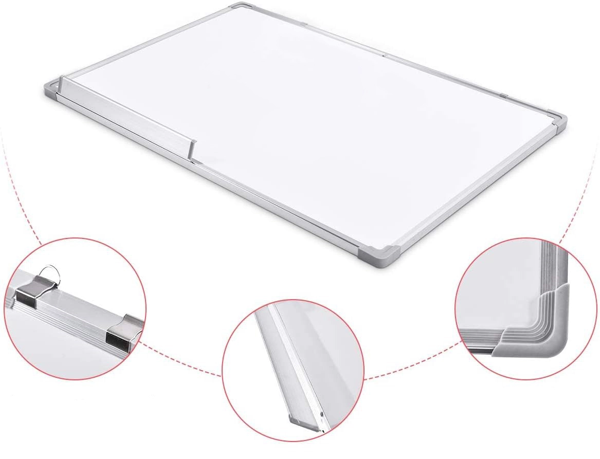 Het stevige aluminium frame met hoekbeschermers verhoogt de duurzaamheid en veiligheid bij dagelijks gebruik. Inclusief een praktische pennenlegger voor stiften en accessoires en ophangbeugels voor snelle installatie aan de muur, zowel horizontaal als verticaal.