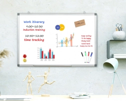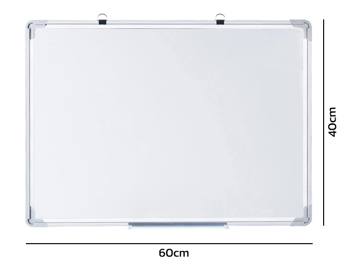Compact magnetisch whiteboard 60 × 40 cm met aluminium frame, ideaal voor kantoor, school en thuis. Biedt een glad droog uitwisbaar oppervlak voor schoon schrijven, een magnetische functionaliteit voor het vastzetten van notities, een pennenlegger en eenvoudige wandmontage.