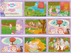 Presentatie van de BABY born Storybook Fialková fee, een pop die een beetje magie brengt in kinderspellen. Met deze pop kunnen kinderen hun eigen sprookjesverhalen creëren dankzij haar interactieve stand, die oplicht met behulp van LED-verlichting. Ook inbegrepen is een klein prentenboek dat de verbeelding prikkelt.