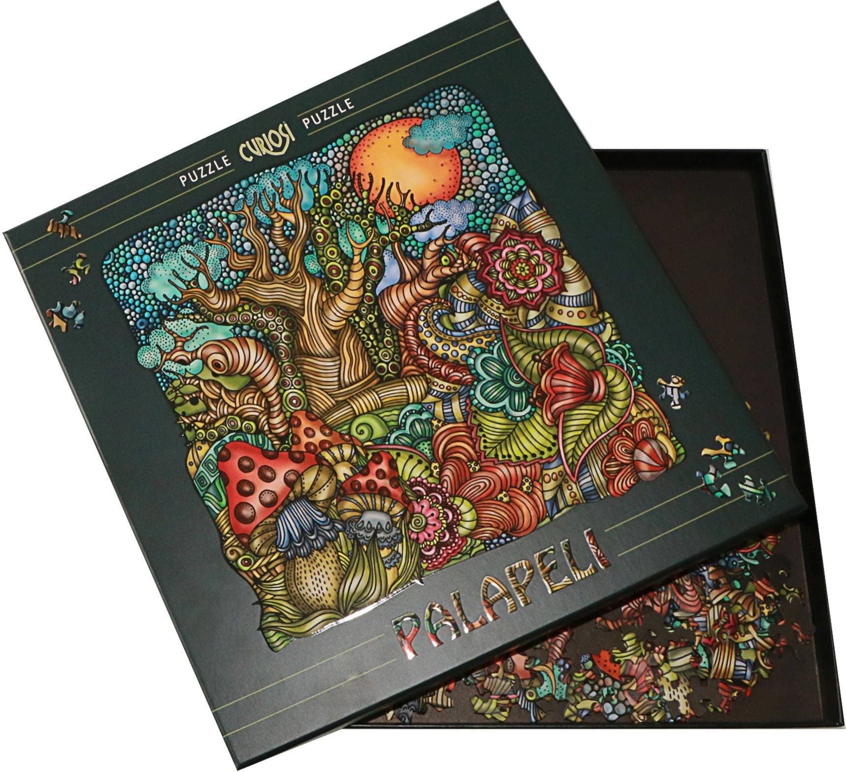 Duik in het wonderbos met de designpuzzel CURIOSI Palapeli. De combinatie van een handgemaakt motief en onconventioneel gevormde stukjes maakt het een uniek stuk dat zowel verzamelaars als gelegenheidsleggers zal bekoren. Dankzij het compacte vierkante formaat komt hij prachtig tot zijn recht op een plank of aan de muur.