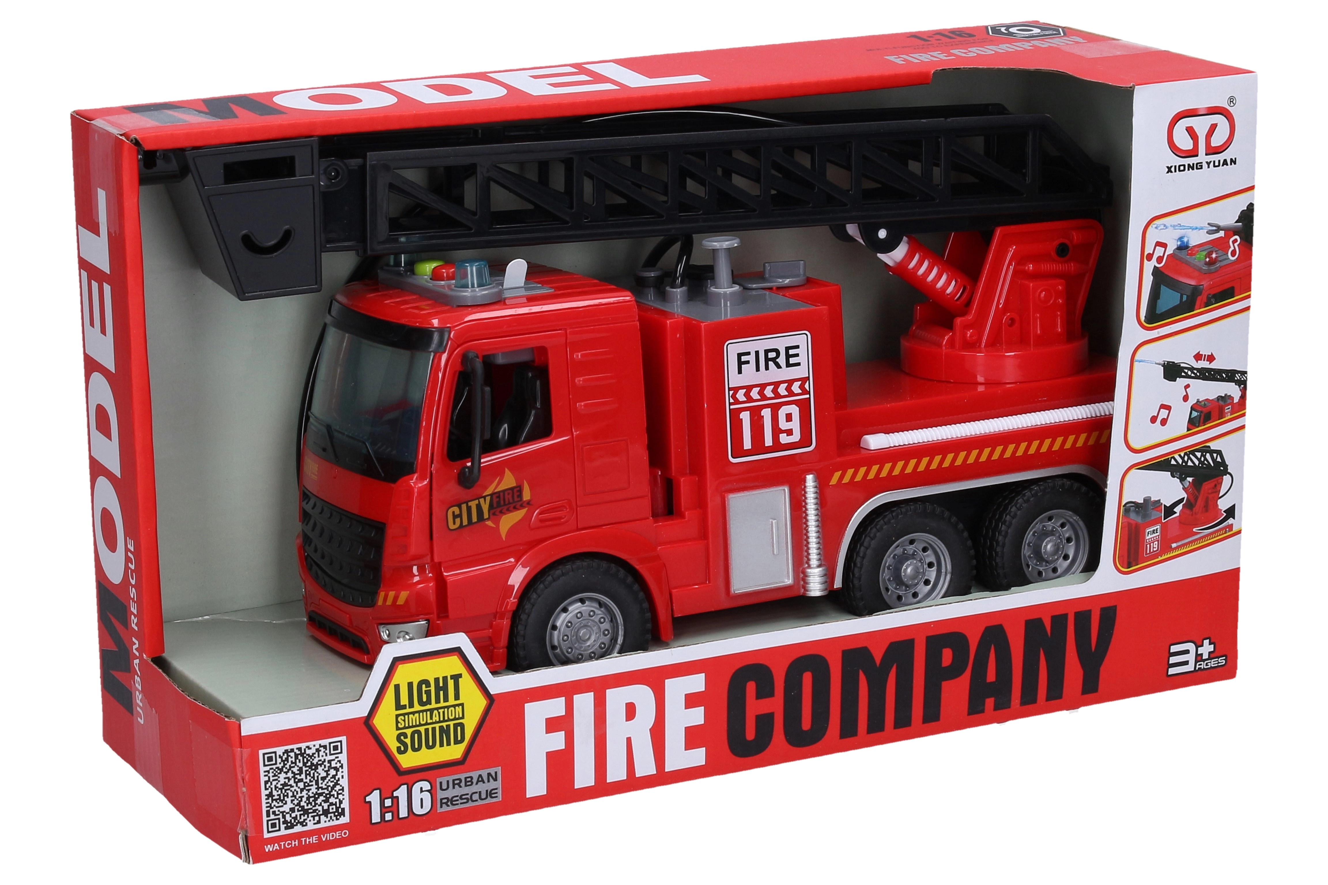 Beleef spannende reddingsmissies met deze brandweerauto die realistische functies combineert met eenvoudige bediening. Dankzij het geïntegreerde waterreservoir in de tank spuit hij echt water – vul via de dop op het dak en druk op de knop op het reservoir.
