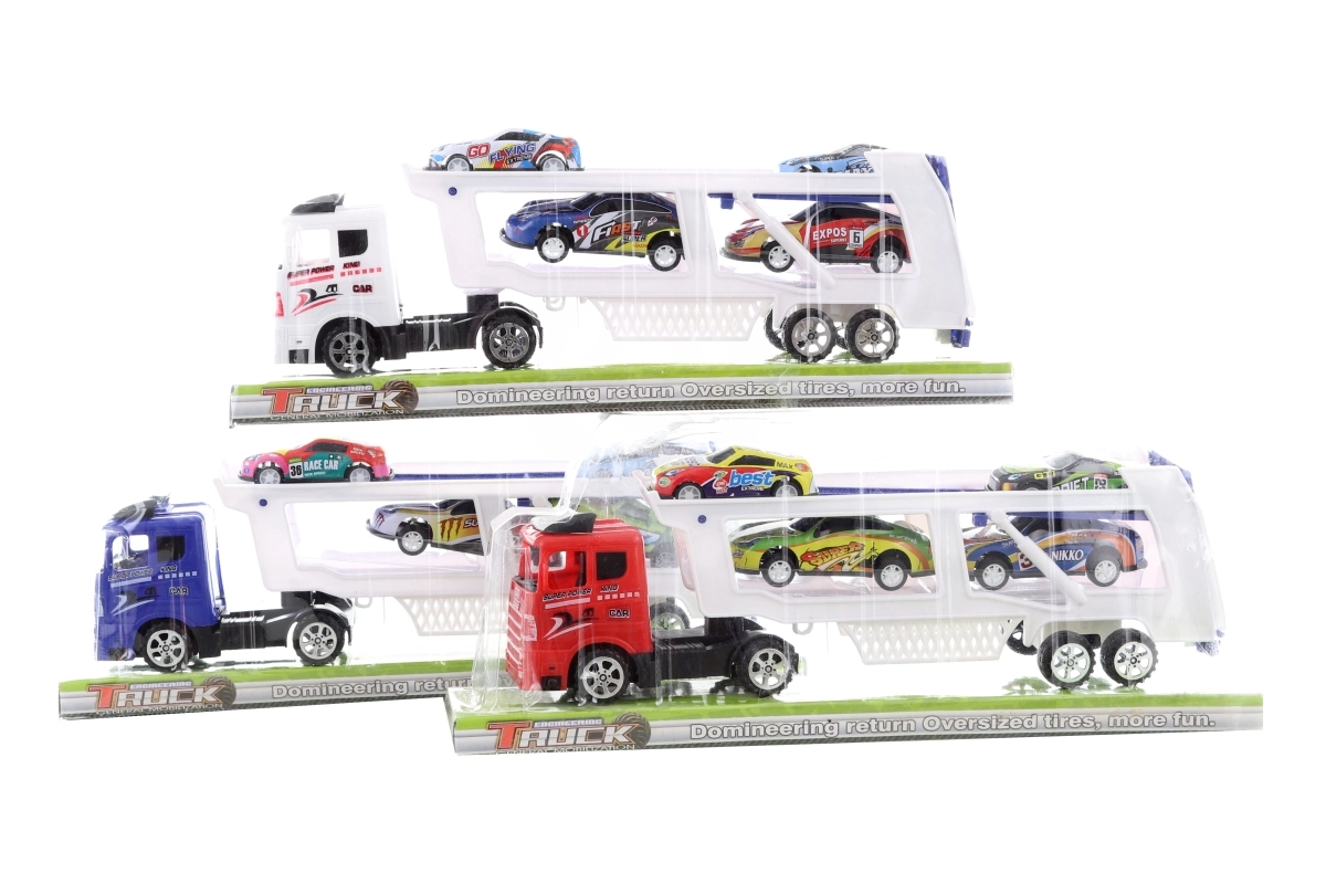 Deze stijlvolle vrachtwagen staat klaar om jouw racers naar hun volgende grote rit te brengen. Vier compacte auto’s met vliegwiel trekken gemakkelijk op en zorgen voor dynamisch spel. Het lichte maar duurzame kunststof materiaal is geschikt voor dagelijks spelen en eenvoudig te hanteren door kinderhandjes.