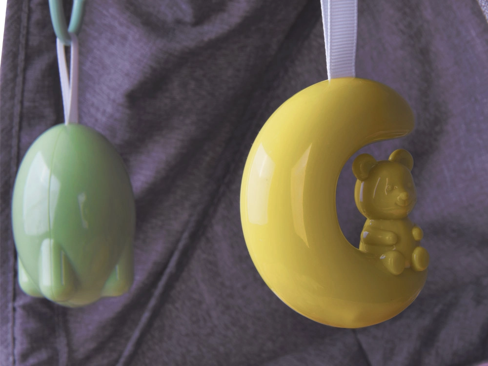 Met de compacte afstandsbediening stel je de schommelintensiteit in, kies je melodieën, pas je het volume aan en activeer je de automatische uitschakeling na 8/15/30 minuten – allemaal zonder op te staan.