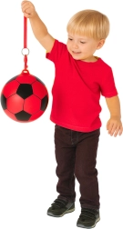 Stimuleer actieve beweging en buitenspelen met deze rubberen bal met voetbalmotief. Het duurzame materiaal garandeert een lange levensduur en uitstekende stuiters, ideaal om tegen te schoppen, te gooien, te rollen en reflexen te trainen. De geïntegreerde beugel maakt het mogelijk een spiraalkoord of lijn te bevestigen, zodat je de bal altijd onder controle hebt.