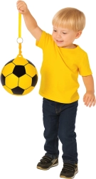 Zoek je een veelzijdige bal voor dagelijks plezier? Deze rubberen bal met voetbalpatroon in felgele kleur biedt een geweldige stuiter en weerstand tegen beschadiging. Dankzij het bevestigingsoog voor een koord kun je ook coördinatie en snelle reacties trainen zonder de bal steeds te hoeven najagen.