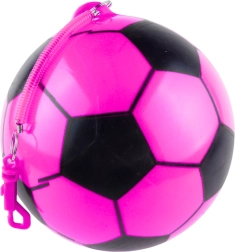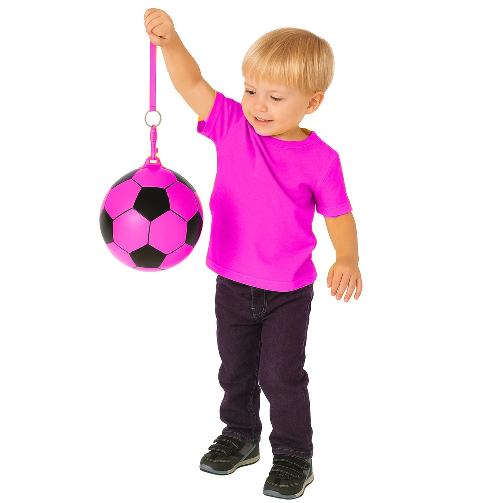 Roze rubberen bal met een diameter van 22 cm in een voetbalpatroon, ideaal om binnen en buiten mee te spelen. Hij is licht, elastisch en duurzaam, stuitert uitstekend en dankzij de elastische bevestiging kan hij aan een koord worden vastgemaakt voor reactietraining en leuke spelletjes.