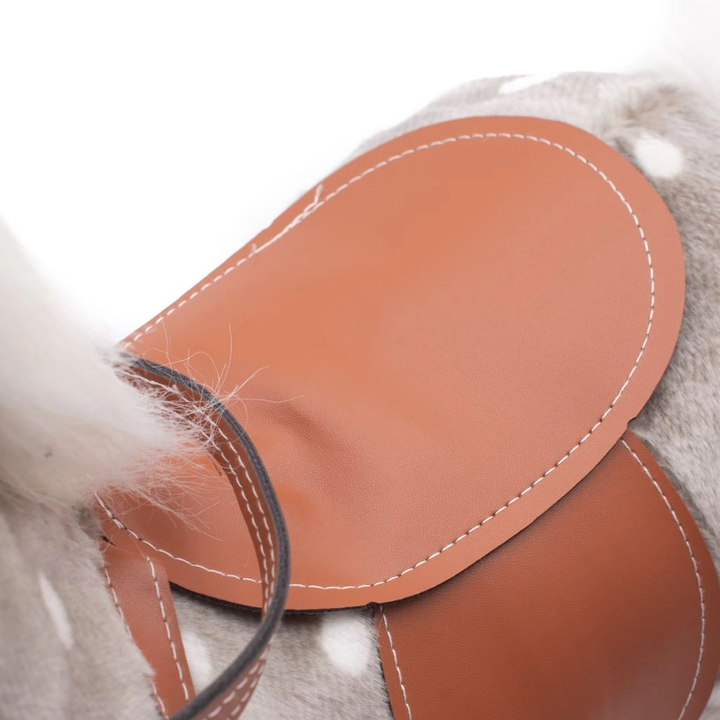 De zachte stof en de gevormde zitting bieden comfort tijdens het schommelen. Details van eco-leer zorgen voor een realistische en duurzame uitstraling.