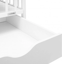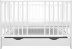 De praktische ruime lade op kogelgeleiders is onder het bed geïntegreerd, raakt de vloer niet en biedt plaats voor beddengoed en benodigdheden binnen handbereik. Drie hoogtestanden van de lattenbodem (22/38/51 cm) en drie uitneembare spijlen maken de omgang met de baby makkelijker en maken later zelfstandig in- en uitstappen mogelijk.