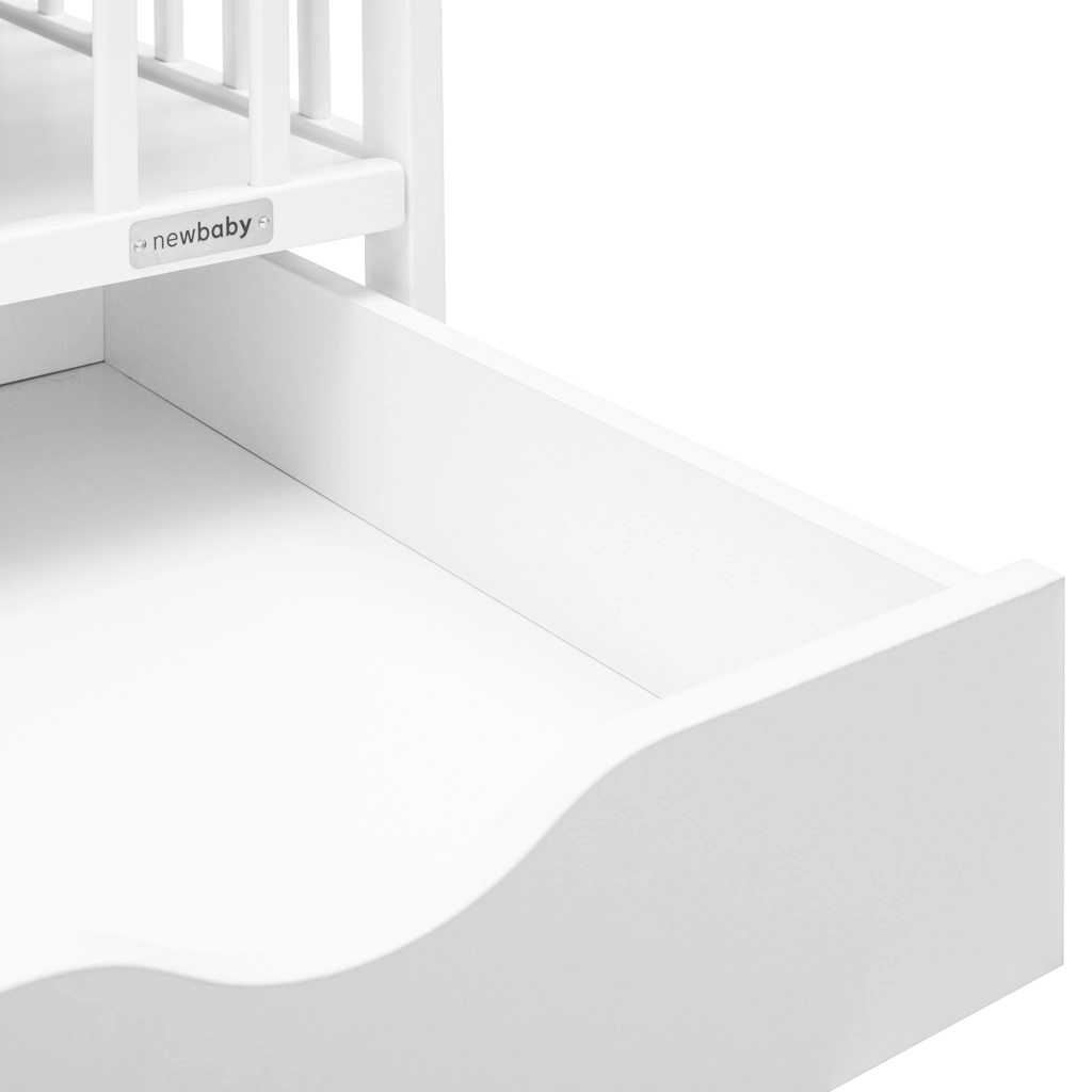 Het New Baby Lilly-kinderledikant in elegant wit combineert veiligheid, een praktische lade en hoogwaardig grenenhout. Dankzij 3 verstelbare hoogtes van de lattenbodem en drie uitneembare spijlen past het zich gemakkelijk aan de groei van je baby en de dagelijkse zorg aan. Gecertificeerd volgens EN 716 voor bewezen veiligheid en betrouwbaarheid.