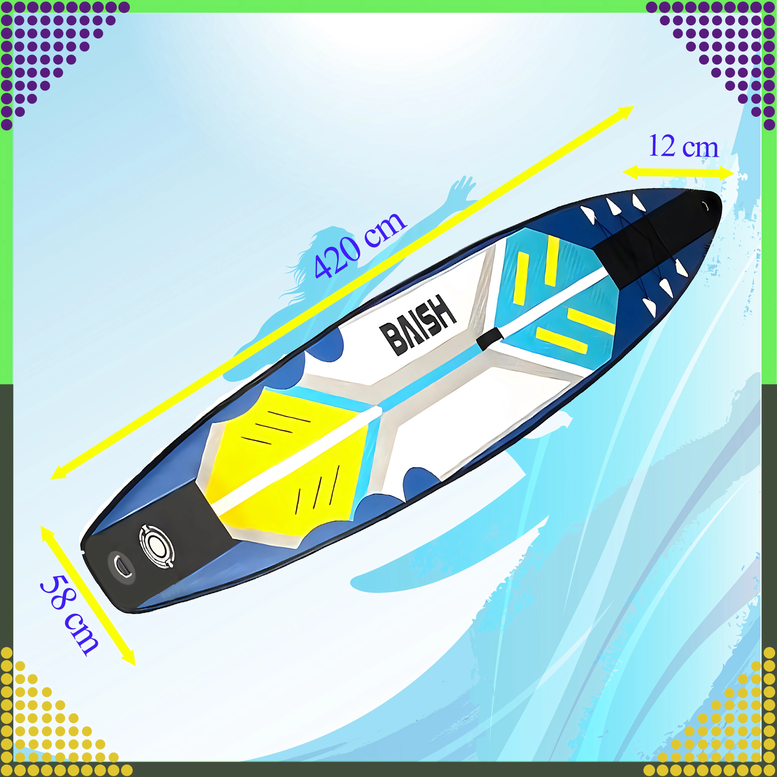 Deze veelzijdige SUP is ontworpen voor zowel beginners als gevorderde gebruikers. De lange, smalle vorm (420 × 58 × 12 cm) zorgt voor efficiënte glij-eigenschappen, stabiliteit en snelheid op vlak water en langere afstanden. Het antislip EVA-schuim met diamantstructuur verhoogt de zekerheid van je stance en comfort, ook tijdens lange ritten.