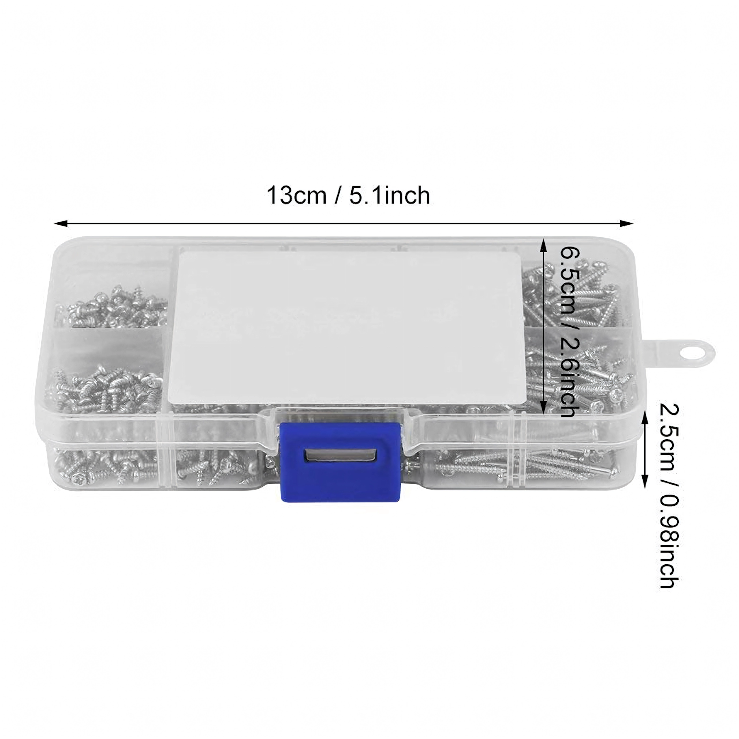 De transparante organizer met vakken en maatbeschrijving versnelt het werk en de keuze aanzienlijk. De schroeven zijn geschikt voor precisie-reparaties aan elektronica, montage van kleine onderdelen, bevestiging van scharnieren en lichte constructieve verbindingen in hout, kunststof en plaatwerk.