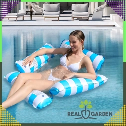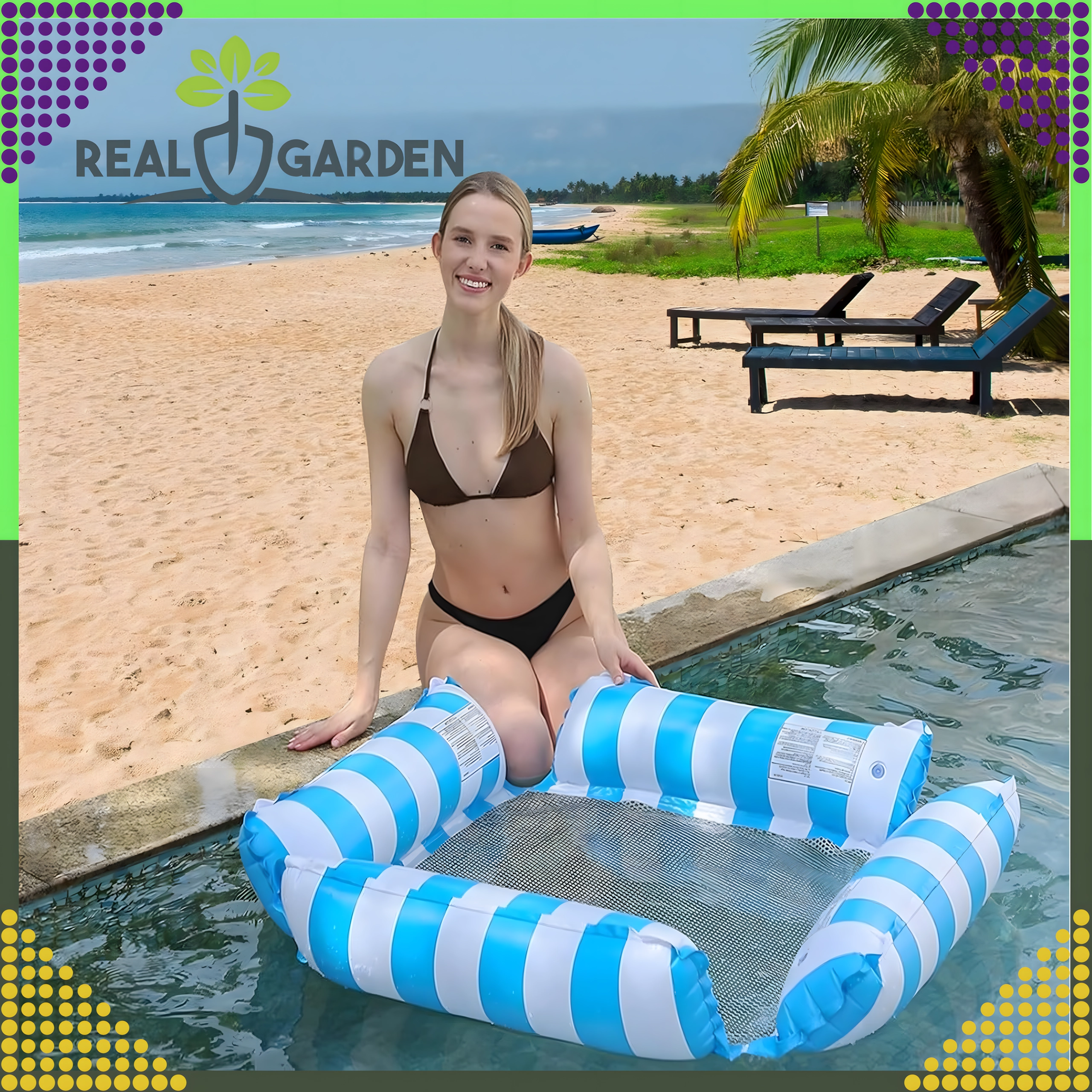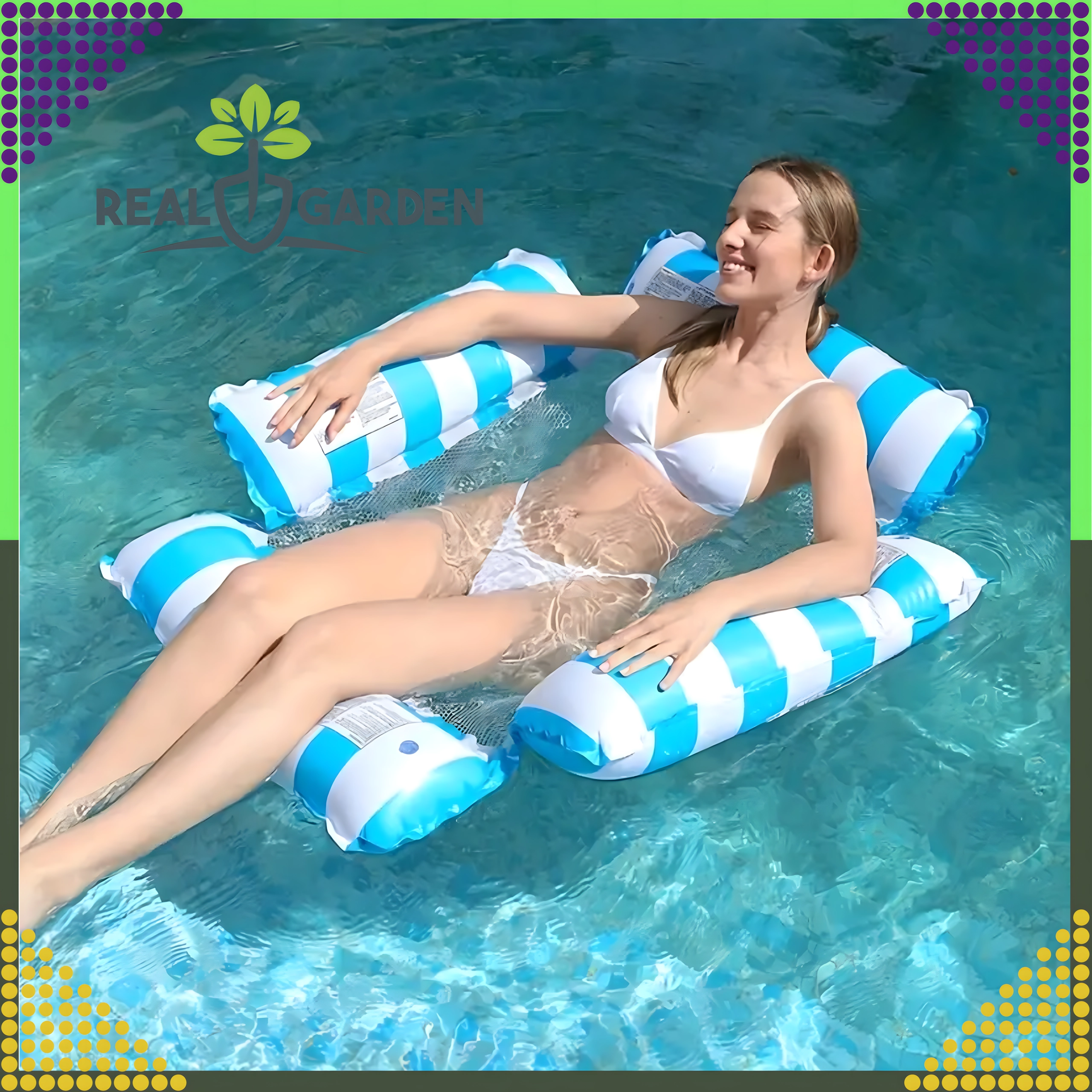 Ontdek de veelzijdige waterhangmat die comfort, stabiliteit en gebruiksgemak combineert. Vier afzonderlijke drijvers houden het lichaam in een prettige positie, terwijl het ademende gaas je aangenaam koelt tijdens het relaxen op het wateroppervlak.