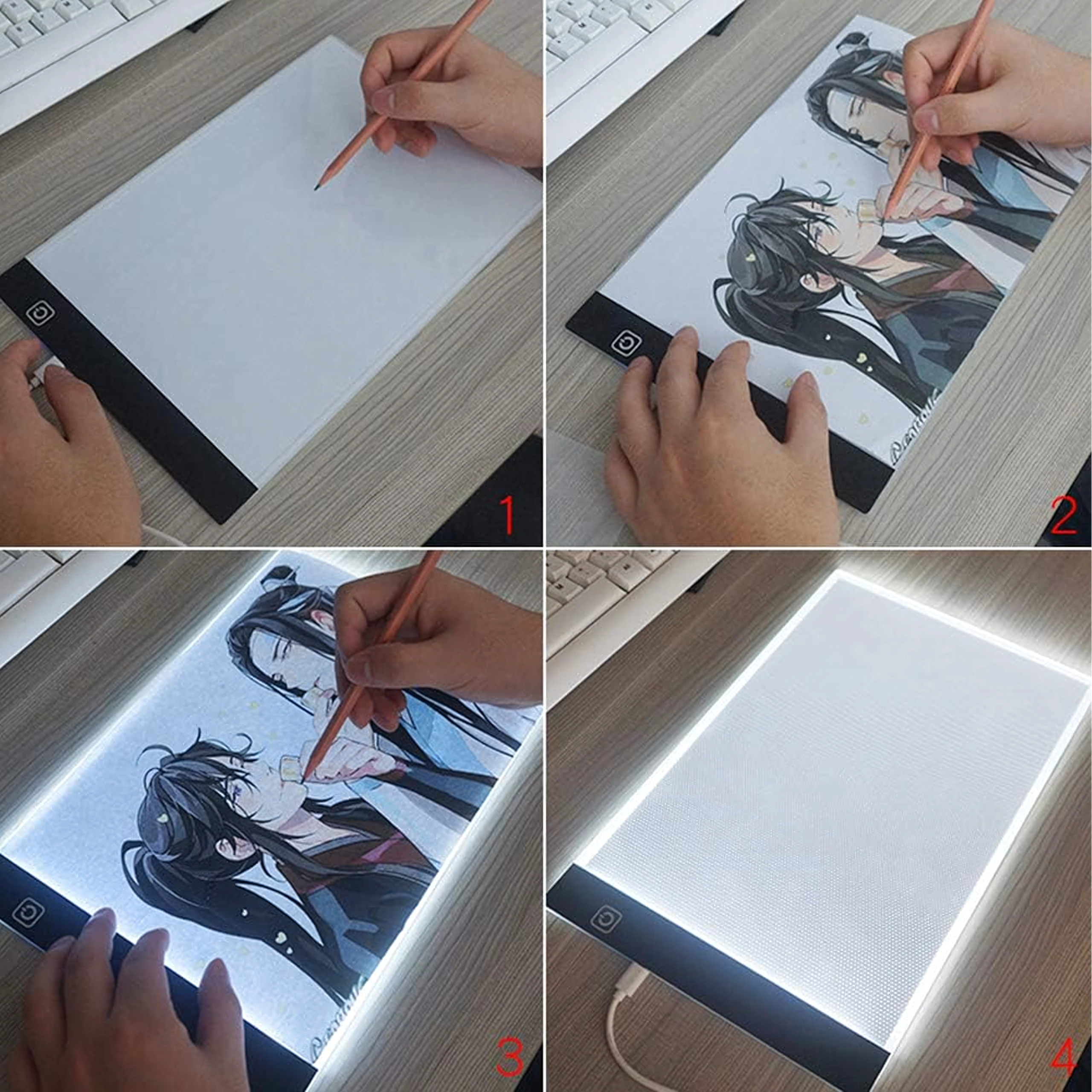 Deze dunne en draagbare LED light pad A4 vereenvoudigt dagelijks creatief werk. Dankzij de gelijkmatige verlichting schijnen lijnen duidelijk door het papier heen, waardoor het overtrekken van strips, illustraties of technische schetsen snel en precies gaat. De bediening is eenvoudig met een touchknop en de voeding loopt via USB vanaf een laptop, powerbank of adapter.
