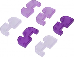 Halftransparante paarse kunststof elementen ogen modern, liggen prettig in de hand en onthullen de verbindingsdetails.