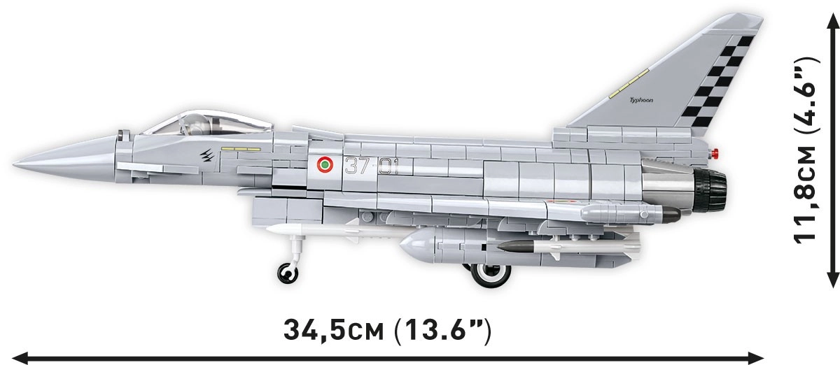 Een gedetailleerd model van de moderne straaljager EUROFIGHTER in de kleuren van de Italiaanse luchtmacht zal liefhebbers van luchtvaart, militair materieel en bouwsets verrukken. De precieze afwerking op schaal 1:48 benadrukt de aerodynamische vormen, bewapening onder de vleugels en de cockpit met heldere canopy. De stabiele displaystandaard met bedrukte naam geeft je vitrinekast een professionele uitstraling.