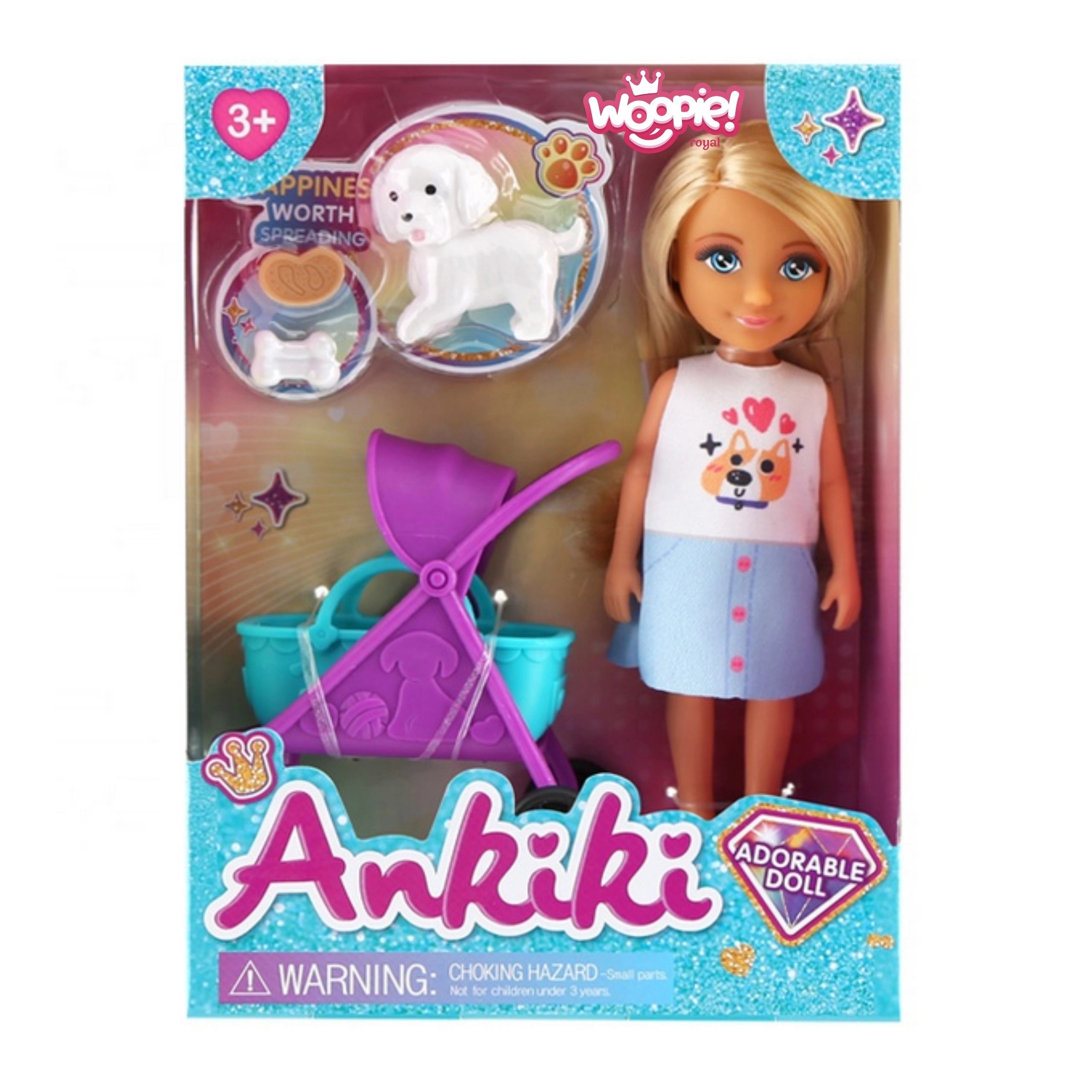 Ontdek de wereld van tedere zorg en fantasie met pop Niki en haar hondje. De set van WOOPIE ROYAL bevat alles wat kinderen nodig hebben voor realistisch spel – van de stijlvolle zomerse outfit van de pop tot de kinderwagen/draagmand voor het huisdiertje. Met de meegeleverde snacks kan je kind op speelse wijze zorgzaamheid en verantwoordelijkheid oefenen.