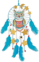 De set bevat voorbedrukte onderdelen, kralen, linten en andere decoraties die kinderen gemakkelijk in elkaar zetten en ophangen. Deze creatieve set voor kinderen stimuleert de fijne motoriek, concentratie en esthetisch gevoel. De afgewerkte dromenvanger is ook een prachtig cadeau dat met eigen handen is gemaakt.
