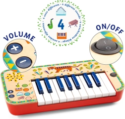 Ontdek de vreugde van muziek met deze bonte houten synthesizer van het merk DJECO. Ideaal voor de eerste muzikale experimenten, het bevordert ritme, motoriek en creativiteit en staat tegelijk prachtig in de kinderkamer.