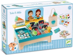 Ontdek de magie van winkeltje spelen met de prachtig uitgewerkte set DJECO kleine winkel Léa & Milo. Kinderen kunnen sorteren, tellen en “verse” producten aanbieden aan klanten, hun woordenschat en fijne motoriek ontwikkelen en een realistische marktsfeer beleven.