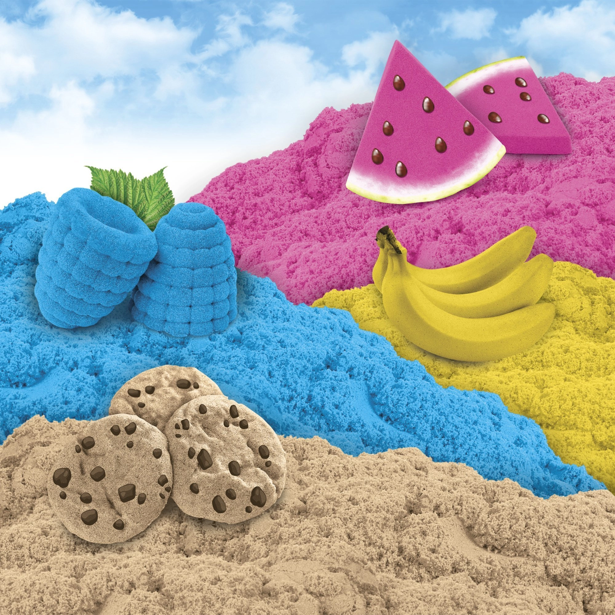 Ontdek de magie van geurend kinetisch zand met de intense geur van sappige watermeloen. KINETIC SAND is gemaakt van natuurzand en een speciale bindcomponent, waardoor de korrels zachtjes aan elkaar hechten, niet stof afgeven en niet verbrokkelen tot rommel. Kinderen kunnen letters modelleren, kastelen bouwen, muffinbolletjes vormen of hun eigen creaties maken – steeds opnieuw.