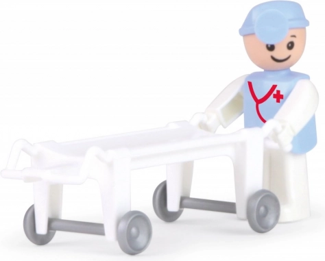 Complete set met een beweegbaar figuurtje en een verrijdbare brancard stimuleert de verbeelding en de rol van kleine hulpverlener.