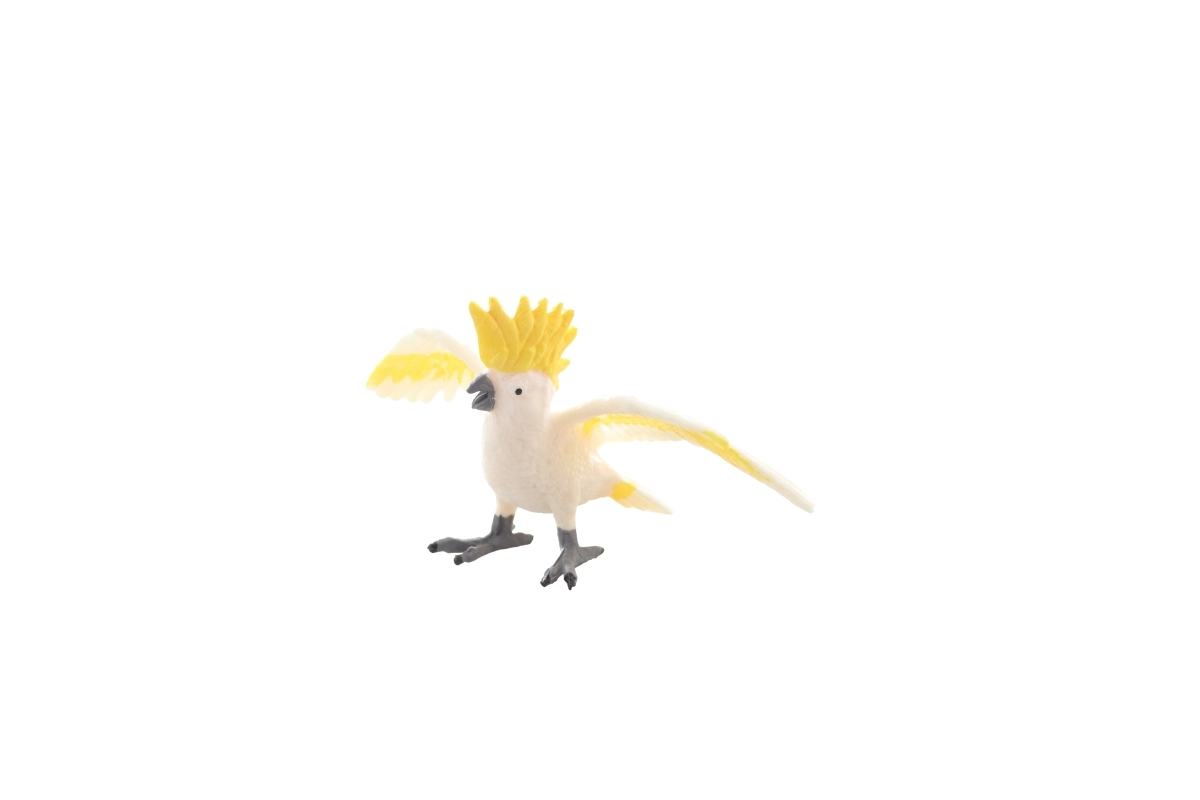 Fijne textuur van de veren, een gele kuif en een authentieke houding brengen de echte uitstraling van een kaketoe naar de kinderkamer of vitrinekast.