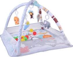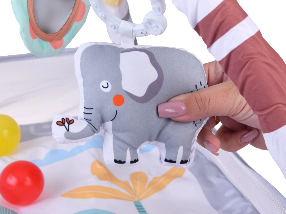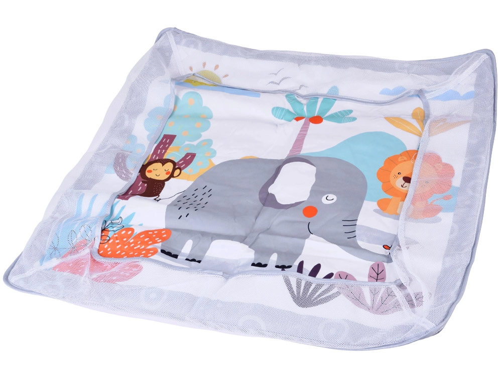 Deze educatieve speelmat met zachte vulling en vrolijke diertjes creëert een veilige hoek om de wereld vanaf de eerste dagen te ontdekken. Twee gekruiste, gemakkelijk afneembare bogen dragen hangende speeltjes die uitnodigen tot kijken, grijpen en bewegen. Mesh zijwanden helpen speeltjes en ballen binnen te houden en vergroten het gevoel van veiligheid.