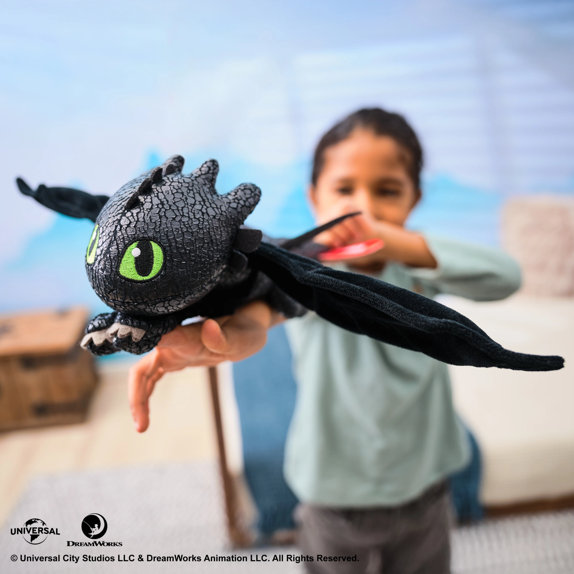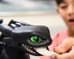 De figuur biedt 5 unieke persoonlijkheden en meer dan 60 geluids- en lichtreacties. Ontgrendel minigames zoals “keep away” (het visje weghouden), “follow me” (volg mij) en “chicken”. Op het hoogtepunt van jullie vriendschap laat hij een plasma-aanval zien – de ogen lichten blauw op en de vleugelspanwijdte tot 51 cm vult de ruimte. Til de draak op en je hoort realistische vlieggeluiden – ideaal voor creatief spel en het herbeleven van filmscènes.
