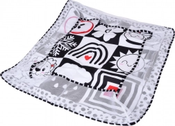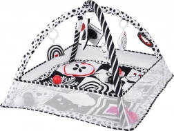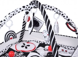 Contrasterende patronen (zwart, wit, rood) helpen baby’s beter scherp te stellen en prikkelen de visuele ontwikkeling. Het zachte oppervlak ondersteunt tummy time, het optillen van het hoofdje en het versterken van nek‑ en rugspieren – belangrijke stappen richting omrollen, kruipen en lopen.