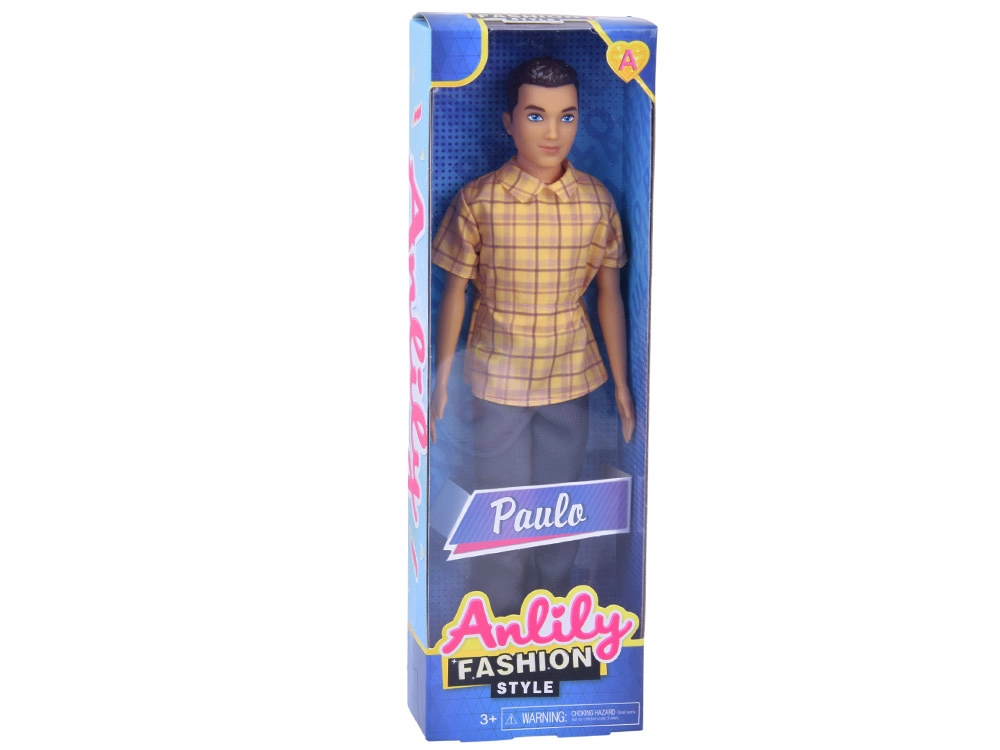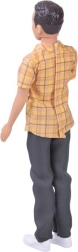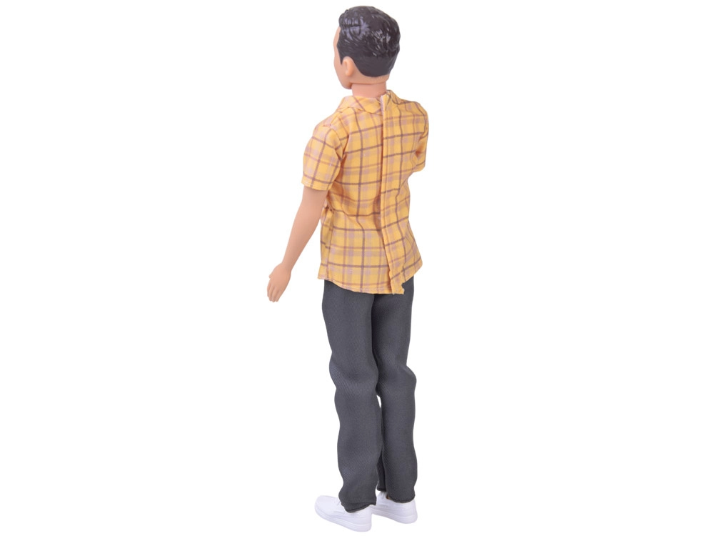 De outfit combineert een casual stijl met opvallende kleuren: een geel geruit overhemd, donkere broek en witte sneakers vormen een veelzijdige set voor diverse speelsituaties. Gelenkte ledematen maken natuurlijke poses en dynamische scènes mogelijk, wat de ontwikkeling van fantasie en fijne motoriek ondersteunt.