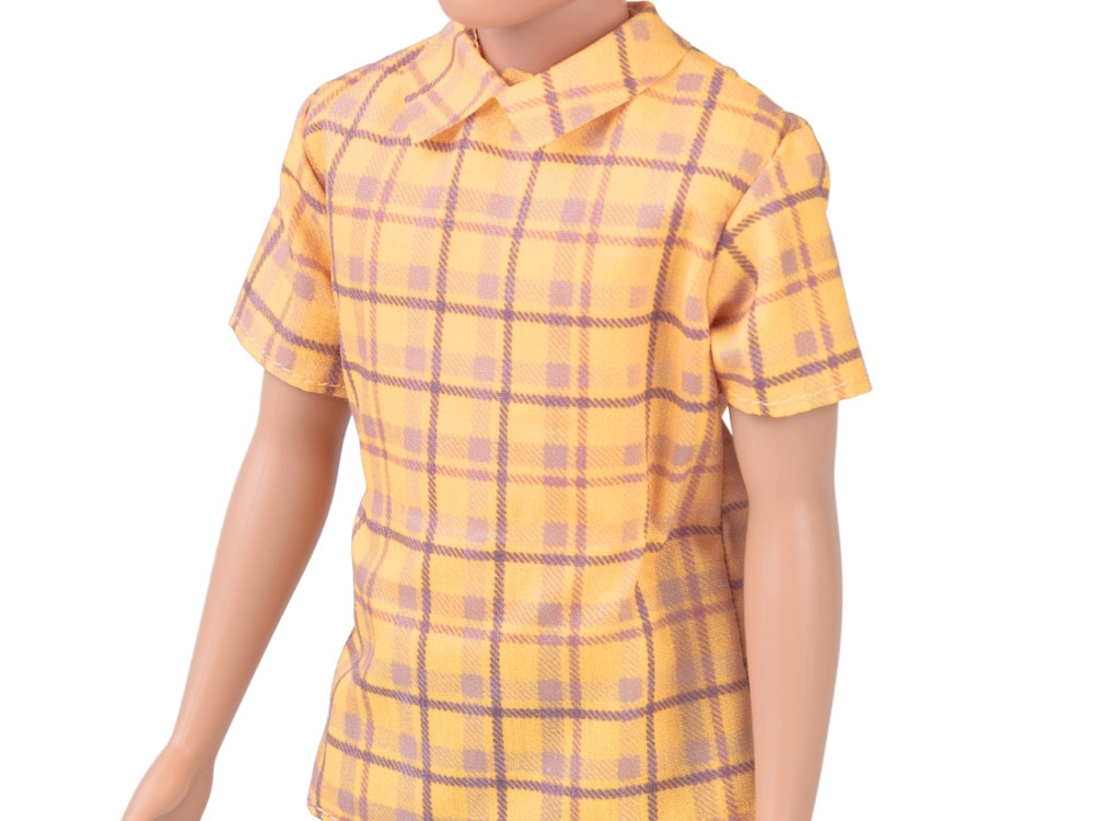 Het gele geruite overhemd met kraag geeft de pop een moderne look en is gemakkelijk te combineren met andere kleding.