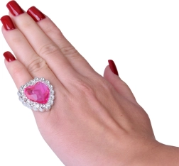 Zilverkleurige kunststof tiara met een groot hart in het midden geeft elke verkleedoutfit een koninklijke uitstraling.