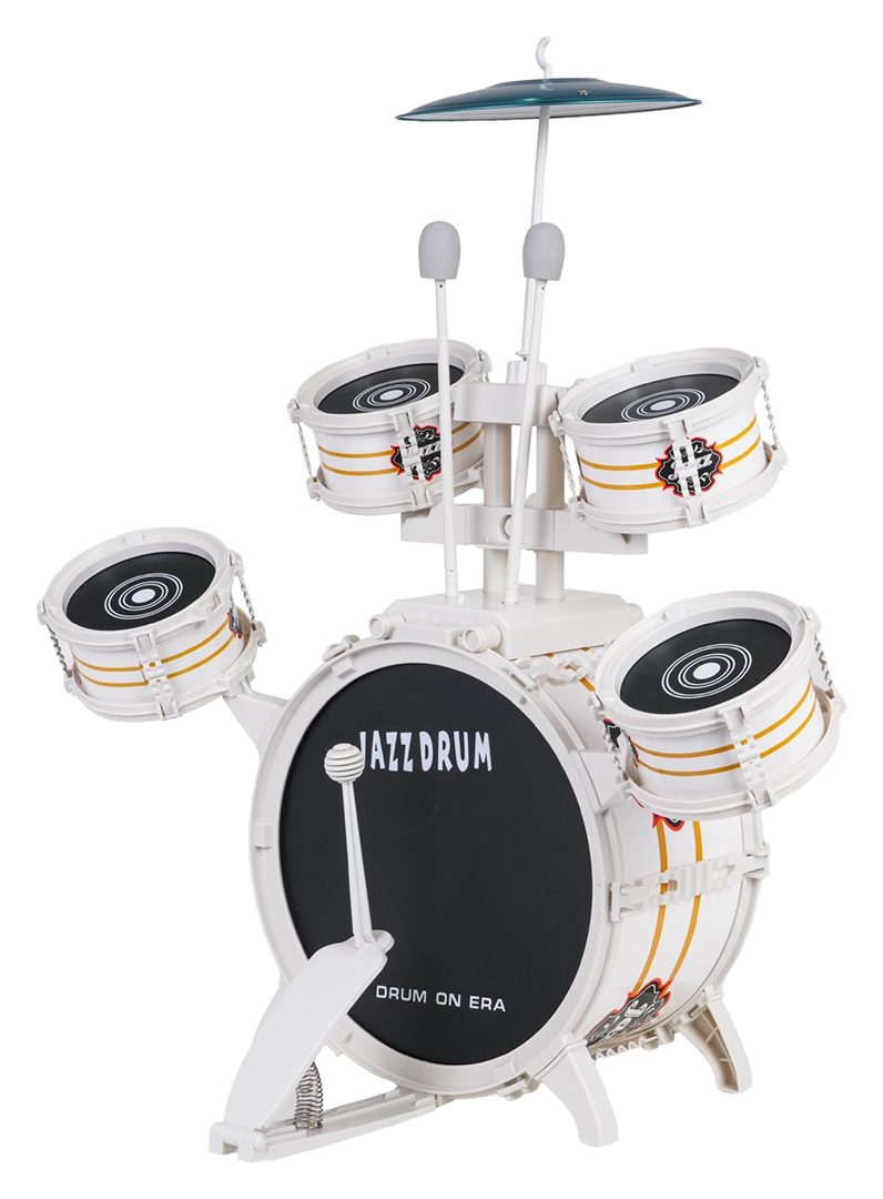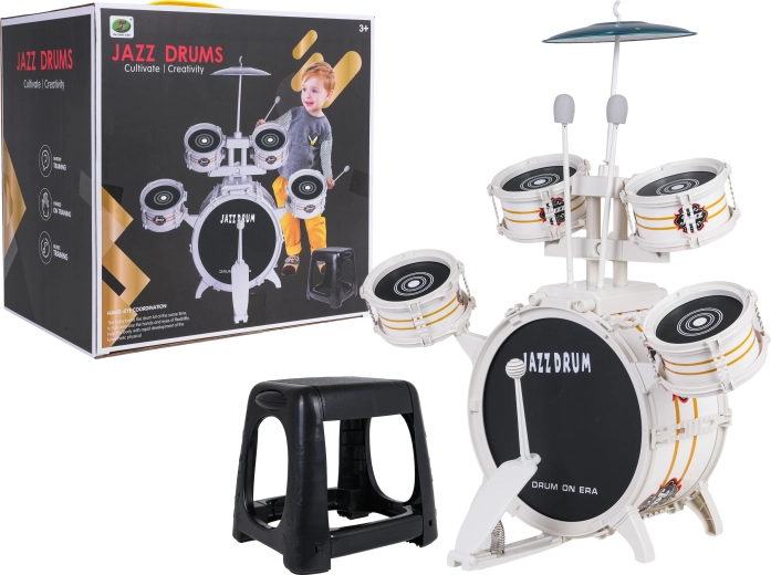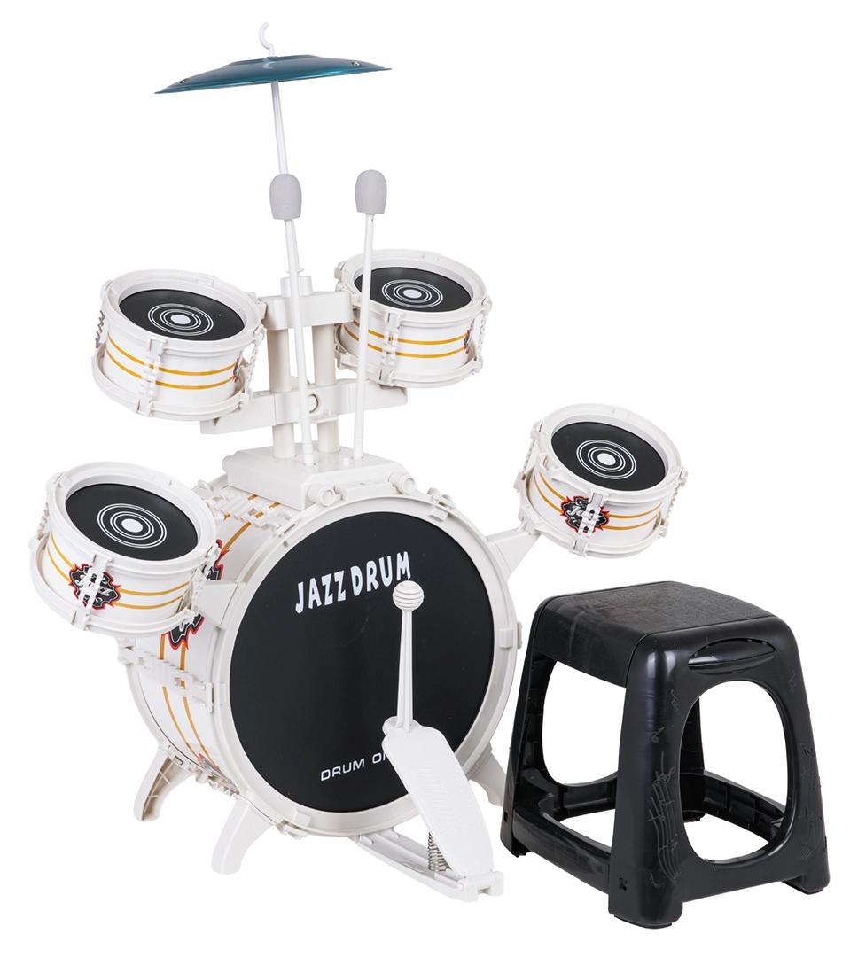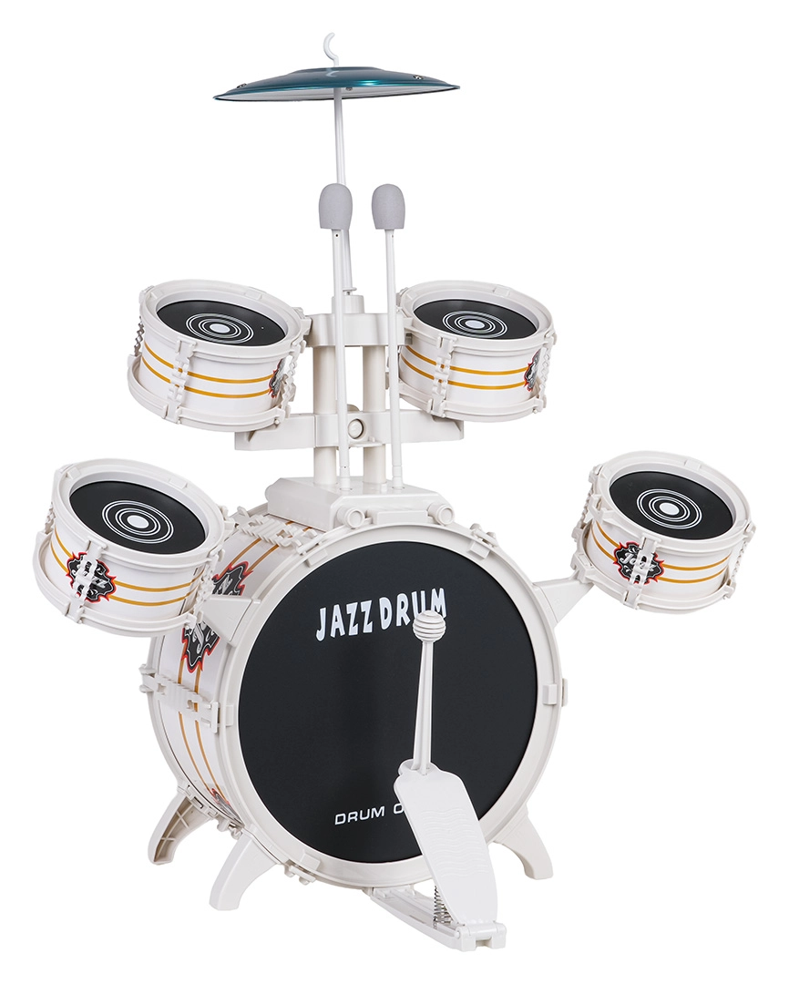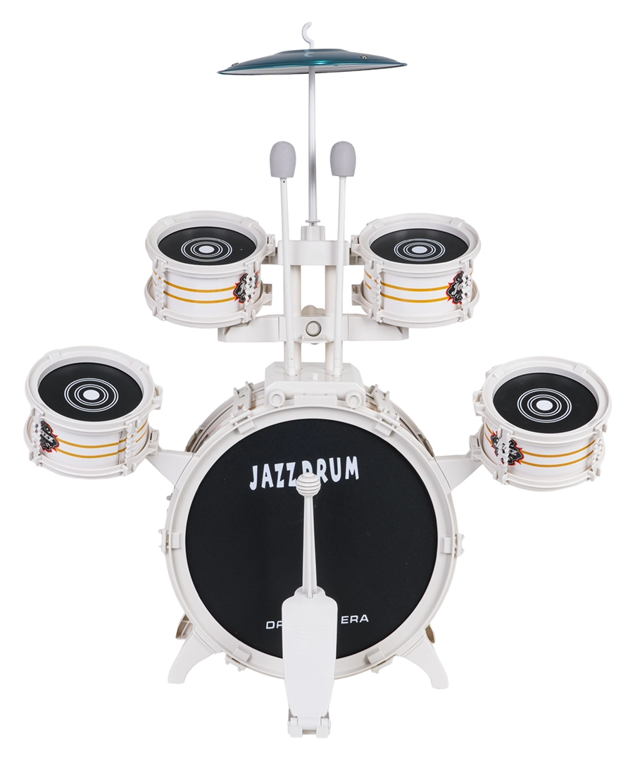 Ontdek de vreugde van muziek met deze witte kinderslagwerkset die oogt als een echt instrument. De set bevat 5 trommels, een metalen bekkentje, een bassdrumpedaa l, 2 stokken en een krukje. Ideaal voor kinderen vanaf 3 jaar, bevordert muzikale vaardigheden en gehoor en is eenvoudig te monteren en te demonteren.