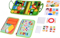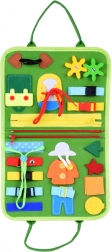 Veterstrikken, ritsen, gespen, knopen, vormen met klittenband, keuken, kinderkamer, tuintje en kalender – een gevarieerd aanbod aan activiteiten voor de ontwikkeling van motoriek en logisch denken.