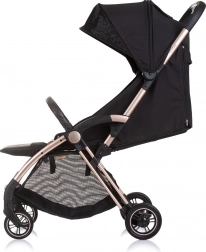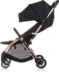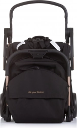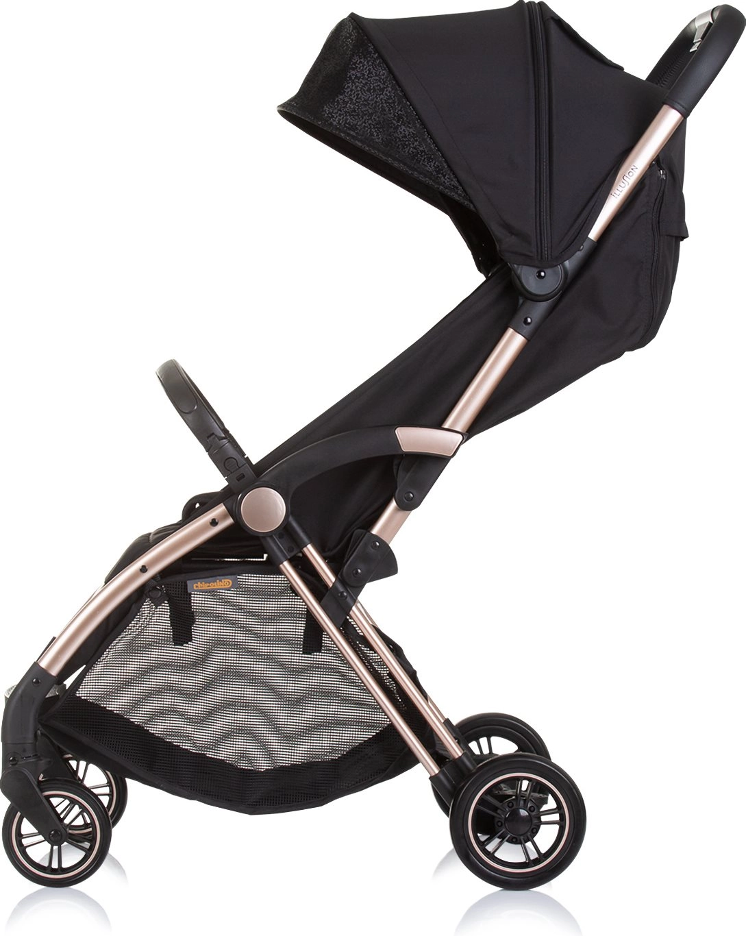 Voor maximaal comfort voor het kind zijn er 3 standen van de rugleuning, een verstelbare voetensteun en een grote kap met ventilatiegedeelte en vakje voor kleinigheden. Ouders waarderen de met eco-leer beklede duwbeugel, de grote boodschappenmand en de snel afneembare, geveerde wielen met gekoppelde rem voor veilig stoppen.