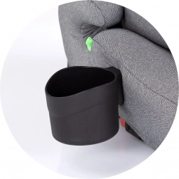 - Comfort – verstelbare hoofdsteun, zachte bekleding, wasbare hoes, bekerhouder.