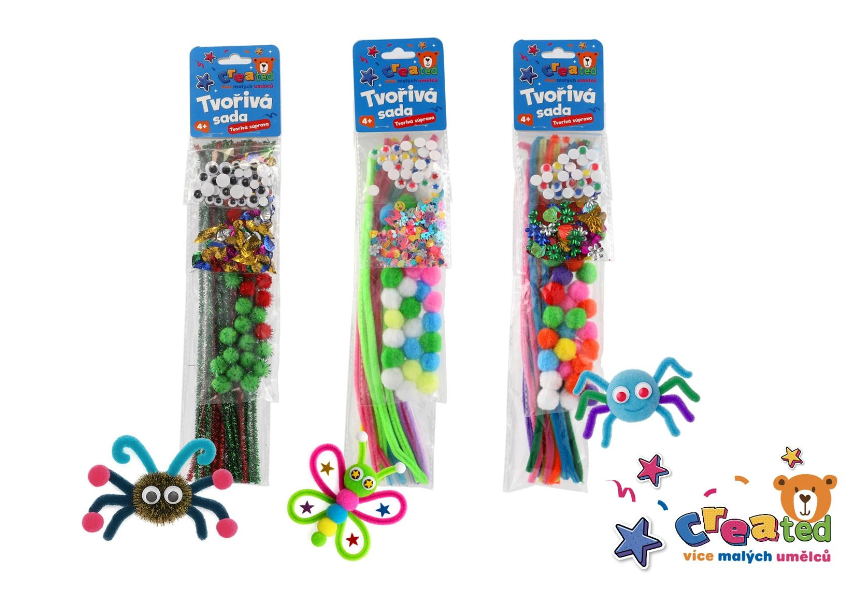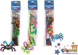Deze creatieve set is ideaal voor kleine knutselaars die graag de wereld van kleuren en vormen ontdekken. Kinderen oefenen hun fijne motoriek, geduld en creatief denken en beleven tegelijkertijd veel plezier bij het maken van spinnen, vlinders en andere vrolijke decoraties.