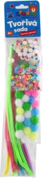 Stimuleer de fantasie van kinderen met een kleurrijke creatieve set met 5 verschillende varianten aan materialen en accessoires. In de verpakking vind je alles wat je nodig hebt om dieren, figuurtjes, bloemen en vlinders te maken. Elke set heeft andere kleurcombinaties, zodat iedere kleine maker iets naar zijn of haar smaak vindt. Je hebt alleen wat lijm en creativiteit nodig – en er ontstaan unieke decoraties.