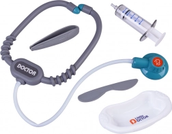 - Realistische accessoires: stethoscoop, thermometer, injectiespuit, otoscoop, schaar, pincet, flesjes en medicijndoosjes
