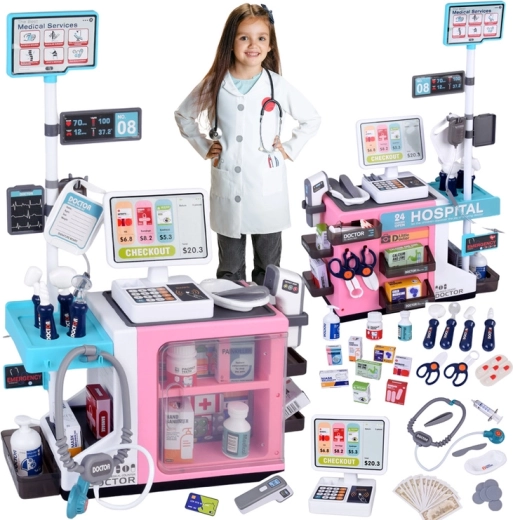 Ontdek de creatieve wereld van arts, apotheek en kliniek in één! Deze uitgebreide doktersset biedt een interactieve kassa met terminal, rijk assortiment accessoires en realistische geluiden van de stethoscoop en thermometer. Kinderen leren zorgen voor patiënten, de basis van financiën en beleven uren speelplezier en leren door spel.