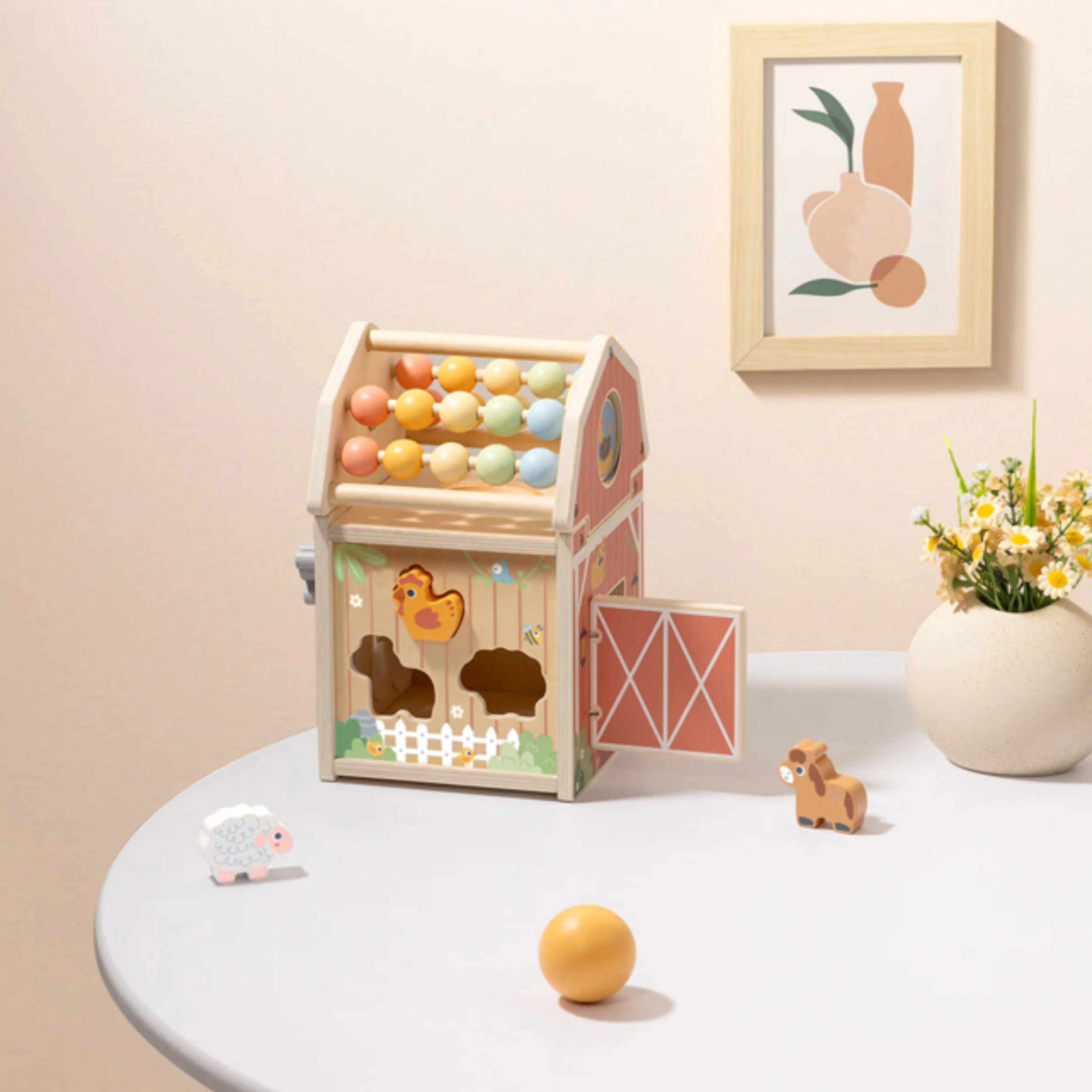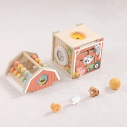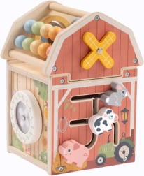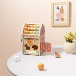 Ontdek de betoverende houten activiteitenstal van TOOKY TOY – een multifunctioneel speelgoed in de vorm van een schuur, dat vormensorteerder, telraam, doolhof en openende deuren combineert. Het stimuleert fijne motoriek, logisch denken en creatief spel en is ideaal voor kinderen vanaf 18 maanden.