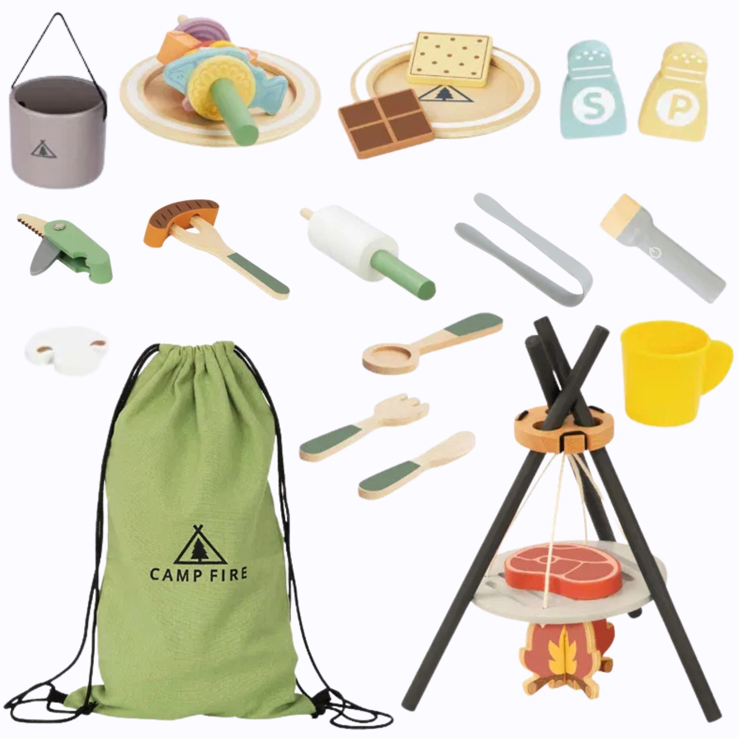 Deze originele set neemt kinderen mee in de wereld van kamperen: tenten, kampvuren en samen koken met vriendjes. De houten onderdelen voelen prettig aan, zijn duurzaam en veilig voor dagelijks spel. Ideaal voor kinderen vanaf 3 jaar die graag volwassenen nadoen en sociale vaardigheden oefenen.