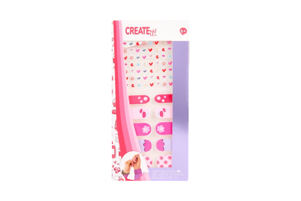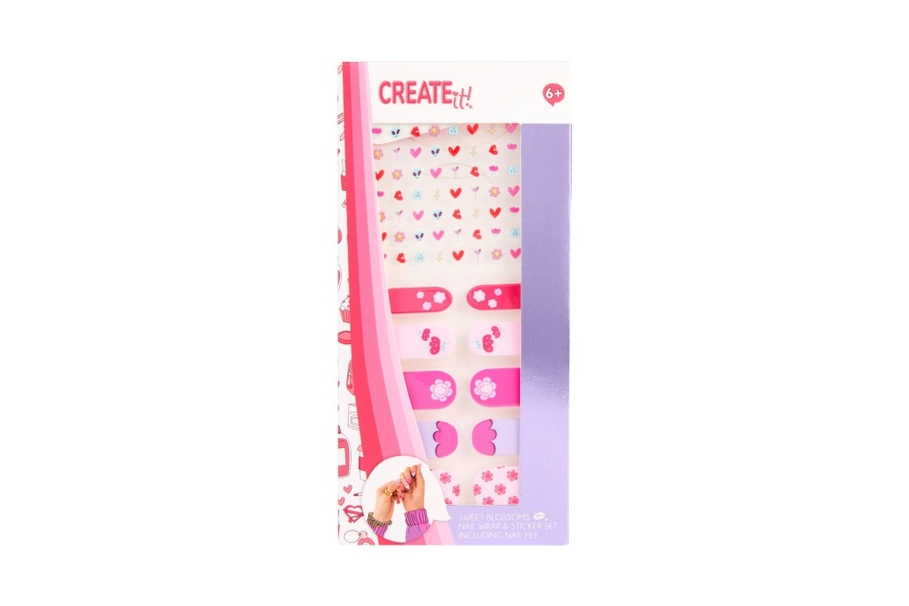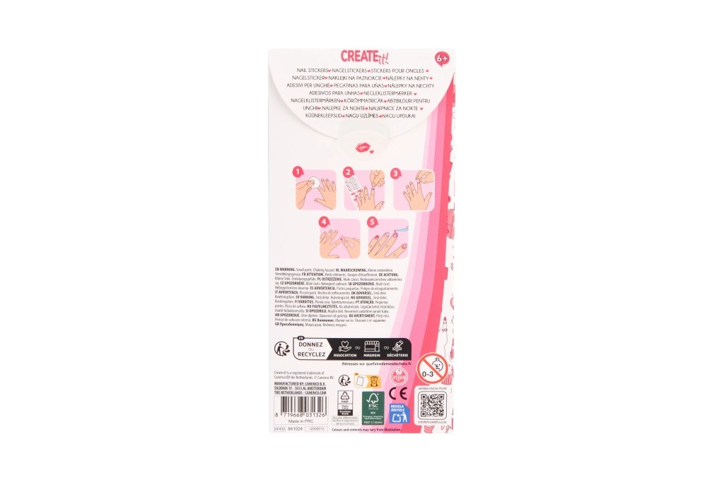 De CREATE IT! set biedt een snelle en leuke manier om je nagels moeiteloos te versieren. Stickers in subtiele en opvallende designs plak je eenvoudig op, en met de vier vijltjes met verschillende korrelgroftes bereid je je nagels precies naar wens voor. Ideaal voor beginners en jonge nail-art-creators.