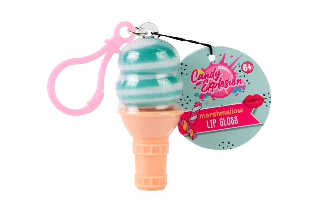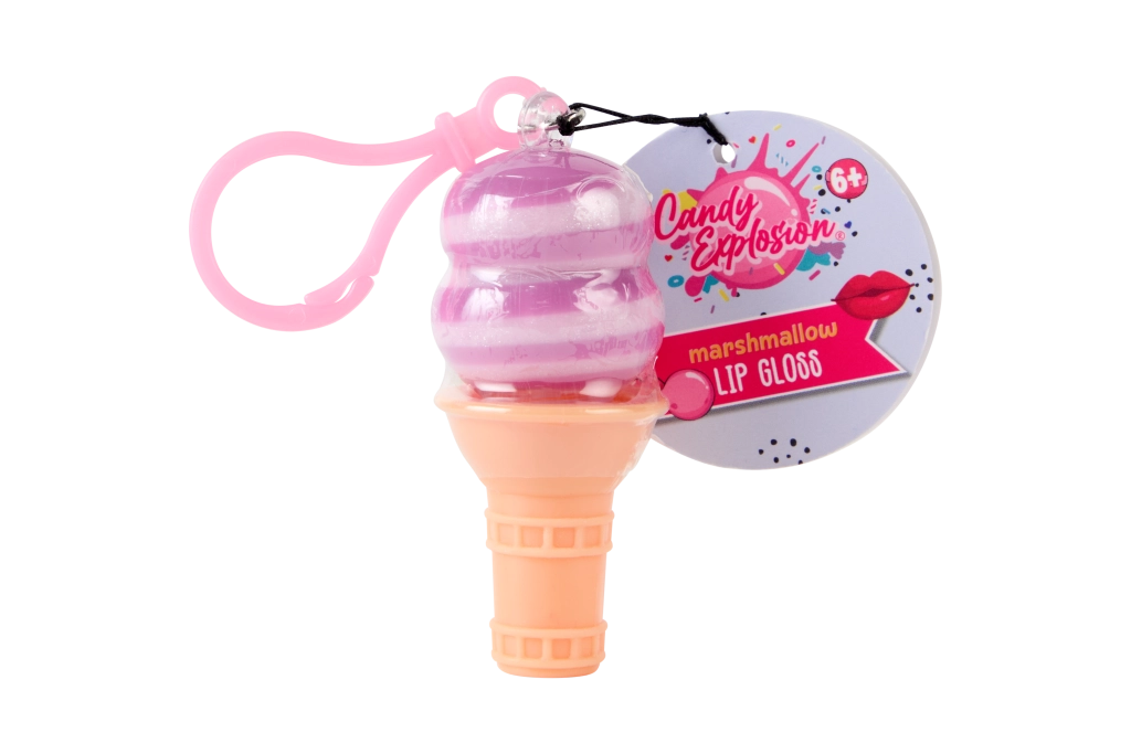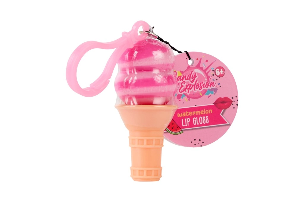 De CANDY EXPLOSION lipgloss in originele vormen van ijscohoorntjes en ijslolly’s maakt van elke verpakking een klein feestje. Dankzij het compacte formaat en de clip/lus om vast te maken bevestig je hem eenvoudig aan een rugzak, sleutels of handtas en heb je lipverzorging altijd binnen handbereik.
