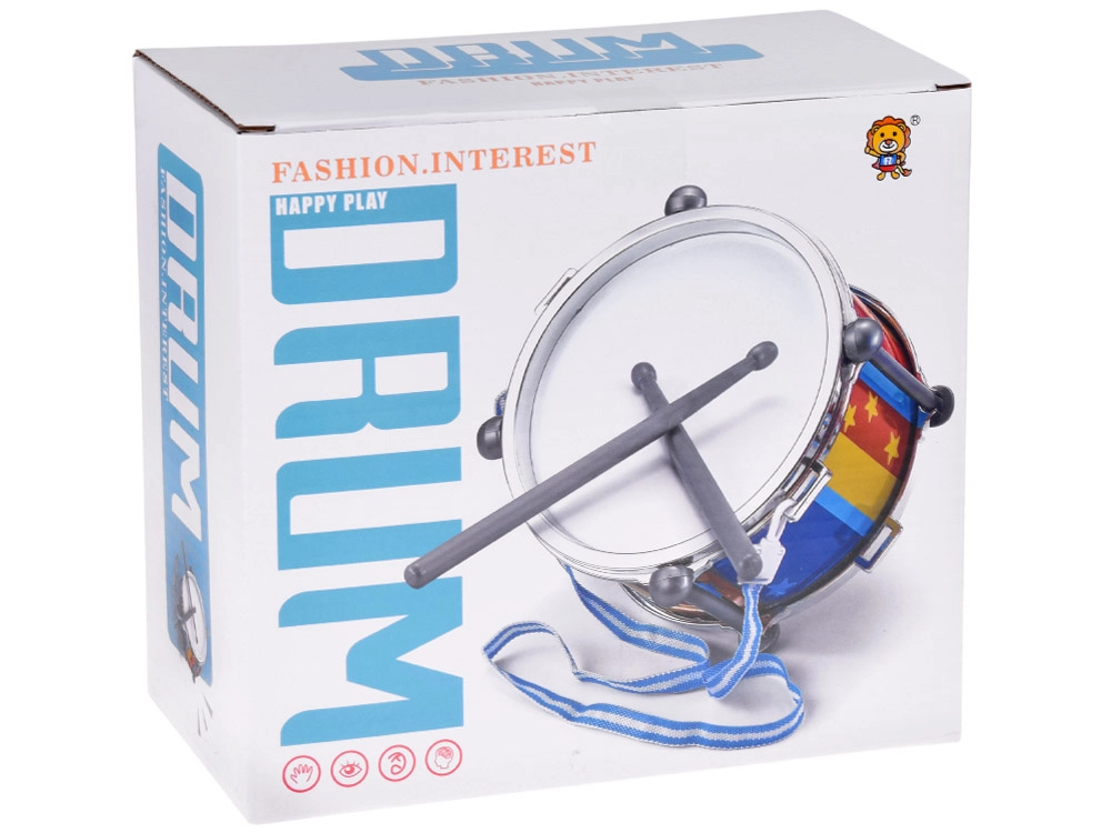 Kleurrijke verticale strepen met sterretjes en metalen-look randen maken van de drum een aantrekkelijke speelgoeddrom en een leuk cadeau. Drummen ontwikkelt de fijne motoriek, oog-handcoördinatie, het gehoor en het natuurlijke muzikaal gevoel.