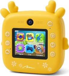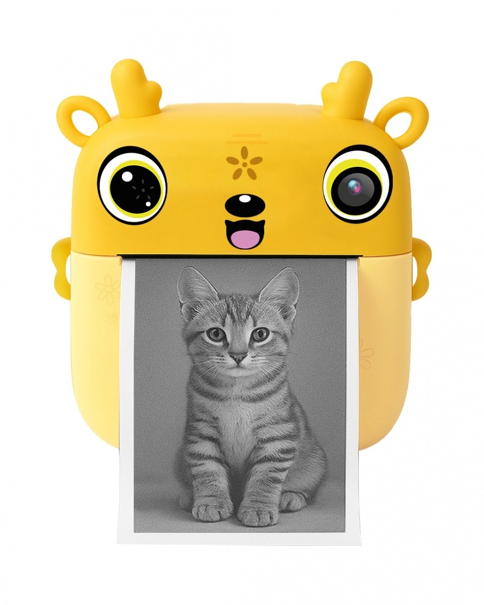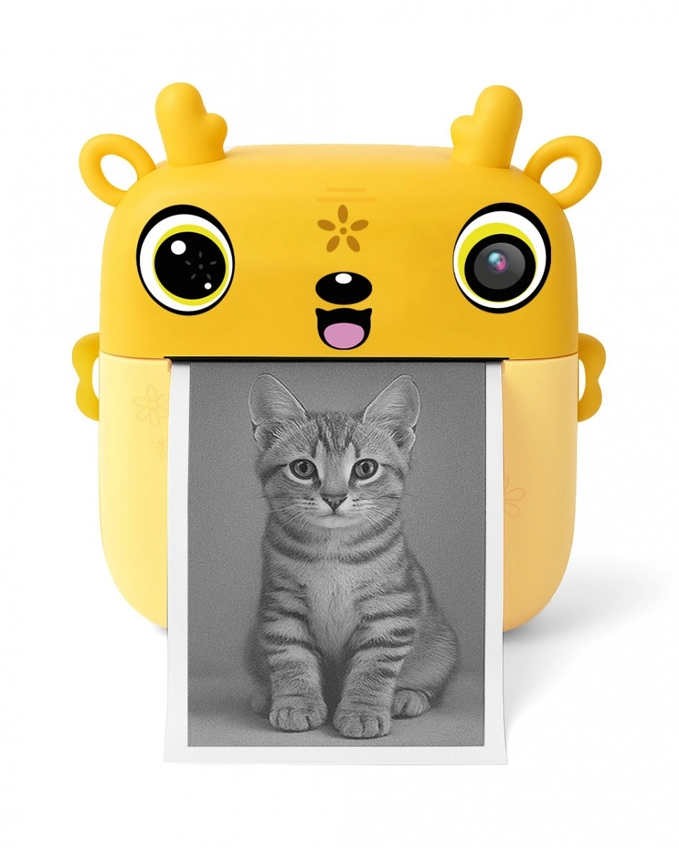 Stimuleer de creativiteit van je kinderen met de kindercamera met printer SNAPI. Dit schattige gele toestel combineert directe zwart‑wit afdruk, eenvoudige bediening, dubbele lenzen en een kleuren­display van 2,4". Print op voordelig thermisch papier, sla foto’s en video’s op een microSD op en biedt ook leuke spelletjes – ideaal cadeau voor kleine ontdekkers.
