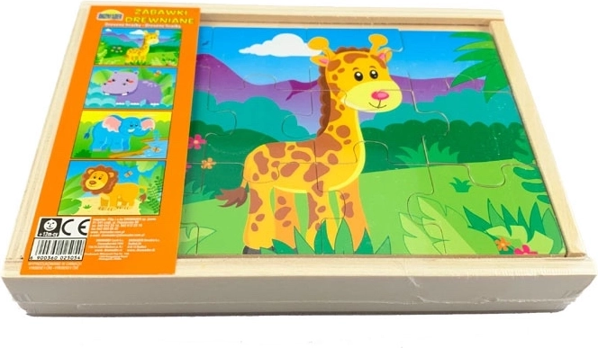 Een schattige houten puzzel met vier dieren uit de dierentuin maakt elk kind blij. Ondersteunt de fijne motoriek, logisch denken en kennis van de dierenwereld. Vrolijke kleuren en lachende motieven zorgen voor speelplezier en veilige entertainment voor de allerkleinsten.