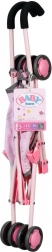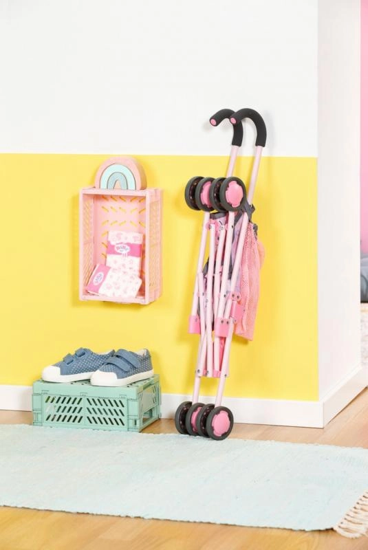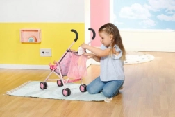 De BABY born poppenwagen is ideaal voor dagelijkse wandelingen en spelen in huis. Het lichte metalen frame, de comfortabele foam handgrepen en de vier dubbele wielen maken bedienen eenvoudig, ook voor kleine kinderhanden. De zitting met vrolijke print is uitgerust met veiligheidsriemen die de pop betrouwbaar op haar plek houden.
